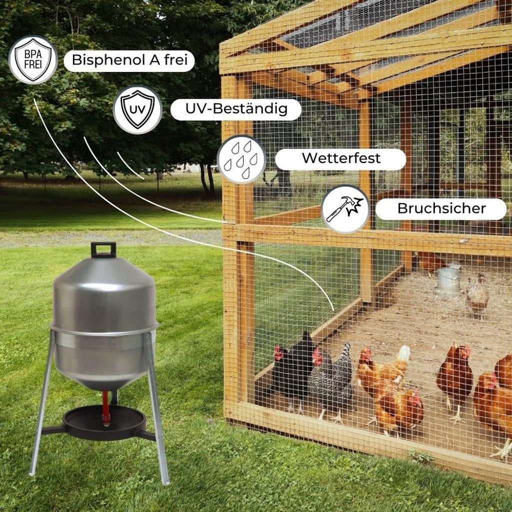 Hallo Hühnerhalter! Diese automatische Tränke macht dein Leben leichter. Kein ständiges Nachfüllen mehr - sie liefert Wasser automatisch, wenn's gebraucht wird. Mit Filter für sauberes, hygienisches Wasser - deine Tiere bleiben gesund! Das anti-kipp Design ist super stabil - auch wenn die Gänse mal rangehen, steht sie sicher. Passt sich automatisch dem Wasserbedarf an - deine Tiere haben immer genug zu trinken. Für Hühner, Enten, Gänse - einfach für alles Geflügel! Aus Kunststoff, ca. 46x15x18 cm groß und 1400 g schwer - robust und langlebig. Spart dir Zeit und Arbeit - mehr Effizienz im Alltag! Einfach aufzustellen - und schon läuft's. Im Lieferumfang: Wassereimer, Grundrahmen, Schnallen, Milchflasche, Spitzenrohr, Wasserschalen und Klebeband - alles dabei! Deine Tiere werden's lieben - und du auch! Endlich keine verschmutzten Tränken mehr - das FilterSystem hält das Wasser frisch. Perfekt für die Geflügelfarm oder den privaten Hühnerstall - einfach praktisch!