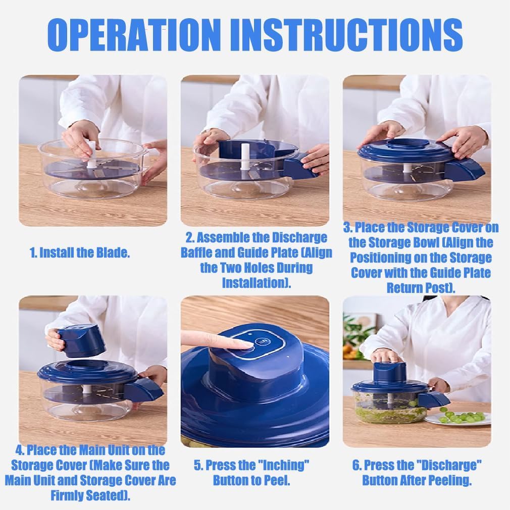 Schälstress adé! Dieser elektrische Traubenschäler von Colcolo erledigt die Arbeit in Sekunden. Mit 5 scharfen Edelstahlklingen schält er empfindliche Früchte wie Trauben, Kirschtomaten oder Kumquats perfekt - ohne das Fruchtfleisch zu beschädigen. \n\nDer 50W Motor ist kraftvoll aber leise. Einfach Obst rein, Knopf drücken und nach 20 Sekunden kommt das geschälte Obst automatisch raus. Perfekt für Marmelade, Salate oder Smoothies. \n\nMit 1300 mAh Akku und USB-Ladung super praktisch. Leicht zu reinigen, alle Teile abnehmbar. Ob für die heimische Küche oder im Gastronomie-Betrieb - dieser Schäler spart dir jede Menge Zeit und Nerven. Endlich mehr Genuss, weniger Arbeit!
