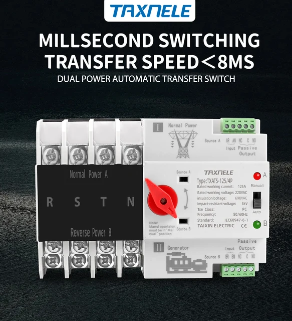 • Automatischer Transferschalter ATS 63A 4P - Hutschienen Einbau
