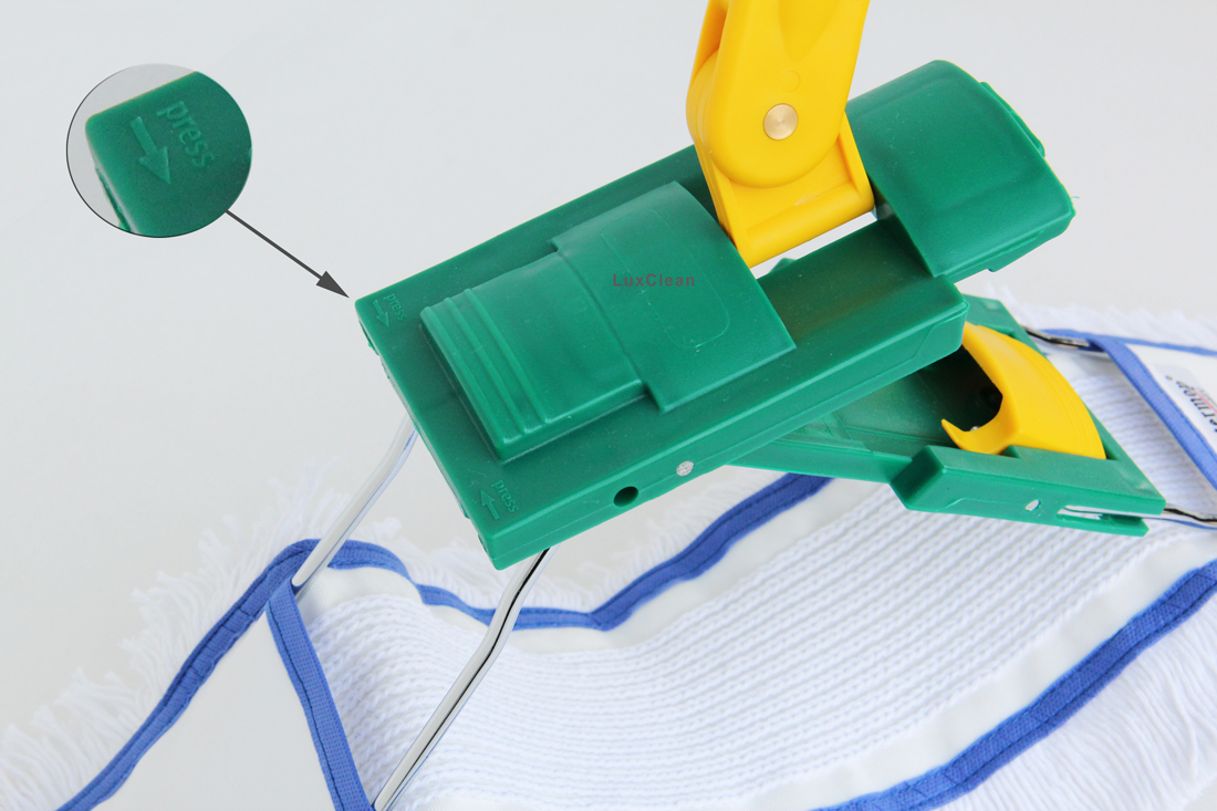 • Wischmopp Mit Druck-Klemm-System - Automatischer Tuchwechsel, 100cm Griff, 4 Mikrofasertücher