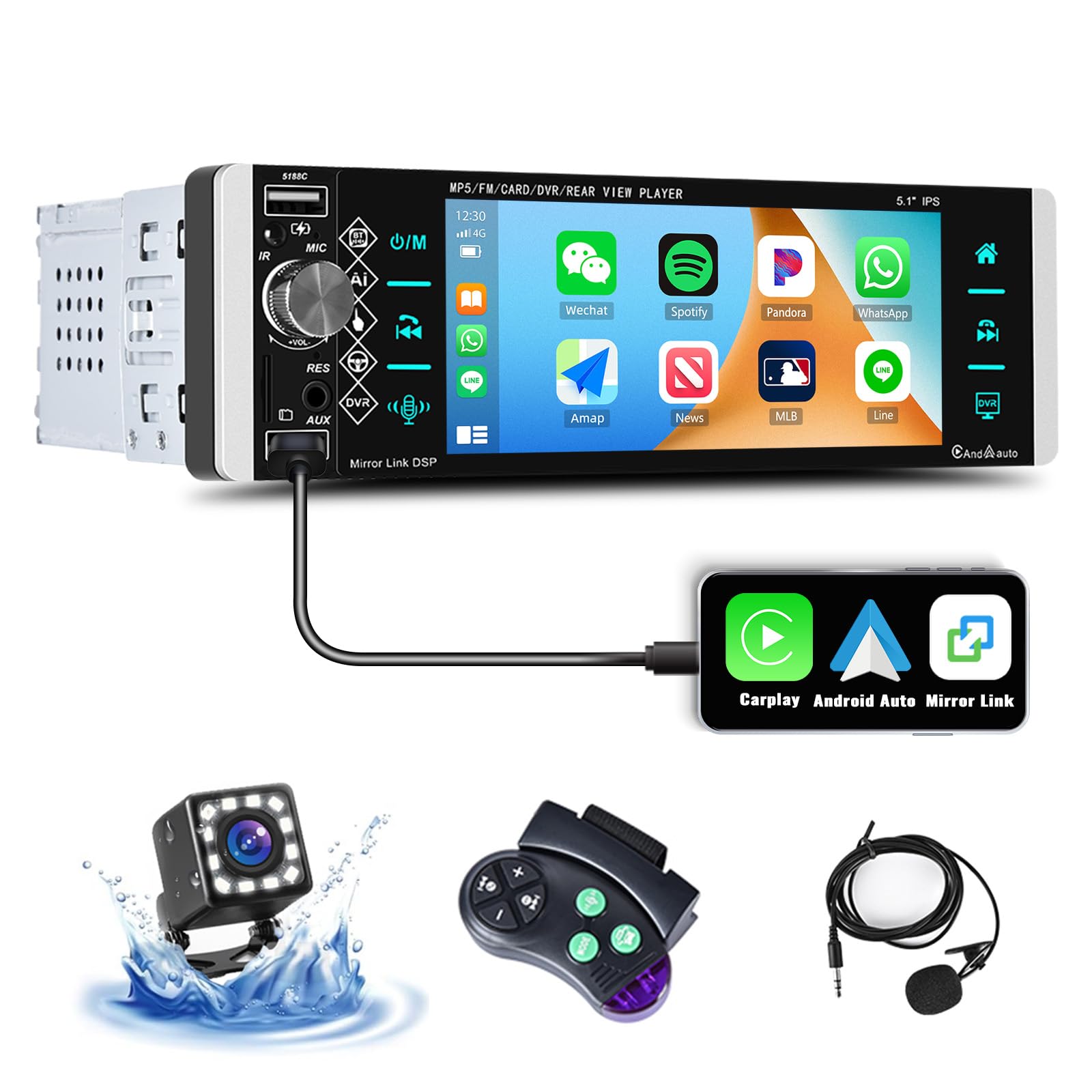 Upgrade dein Auto mit diesem modernen CAMECHO Autoradio! Mit 4 Zoll HD Touchscreen der super klar und responsive ist. Das Beste: Unterstützt wired CarPlay UND Android Auto - einfach per Kabel verbinden und schon hast du alle Features deines Smartphones auf dem Display! Navigation mit Google Maps oder Apple Maps, Musik-Streaming, Telefonate - alles ohne dein Handy anfassen zu müssen. Super sicher während der Fahrt! Mit Bluetooth 5.1 für kabellose Musik und Freisprech-Funktion. Der eingebaute Equalizer mit 7 Bändern lässt dich den Sound genau an deinen Geschmack anpassen - ob Bass-heavy oder eher ausgeglichen. Kommt mit Rückfahrkamera - perfekt für sicheres Einparken! Lenkradsteuerung kompatibel - behalte die Kontrolle ohne die Hände vom Lenkrad zu nehmen. FM/RDS Radio für deine Lieblingssender. Einfache Installation - passt in die meisten 1 Din Schächte. Im Lieferumfang: Radio, Stromkabel, Hupenkabel und alles was du brauchst. Mach deine Fahrten sicherer und unterhaltsamer!