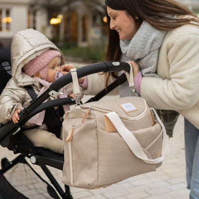 Wow, diese Wickeltasche hat ja alles was man braucht! Mit 16 Litern Volumen passt da die komplette Baby-Grundausstattung rein. 10 verschiedene Fächer - alles hat seinen Platz und du findest sofort was du suchst. Inklusive isolierter Tasche für Fläschchen und Wickelunterlage - praktisch! Kannst du auf der Schulter tragen, am Kinderwagen befestigen oder per Trolley-System auf dem Koffer. Aus Frankreich - da steckt Qualität drin! Wasserdichtes Material, nichts läuft aus. Der Schultergurt ist abnehmbar, super flexibel. In trendiger Farbe 'Tonerde' - gefällt Mama und Papa gleichermaßen. Perfekt für unterwegs, ob Einkaufen, Ausflug oder Reisen. Einfach alles reinpacken und los! Sieht schick aus und ist mega praktisch. Einfach bestellen und stressfrei mit Baby unterwegs sein!