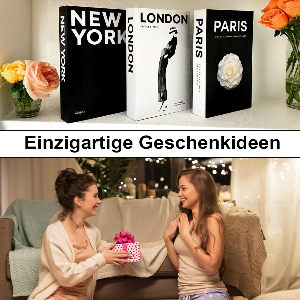 Kennst du das? Dein Regal wirkt etwas leer, aber mit echten Büchern willst du es nicht vollstellen? Dann sind diese Deko-Bücher genau das Richtige für dich! Das 3er-Set in schickem Schwarz-Weiß-Design sieht täuschend echt aus - aber natürlich kannst du sie nicht lesen, denn sie sind aus stabilem Karton.