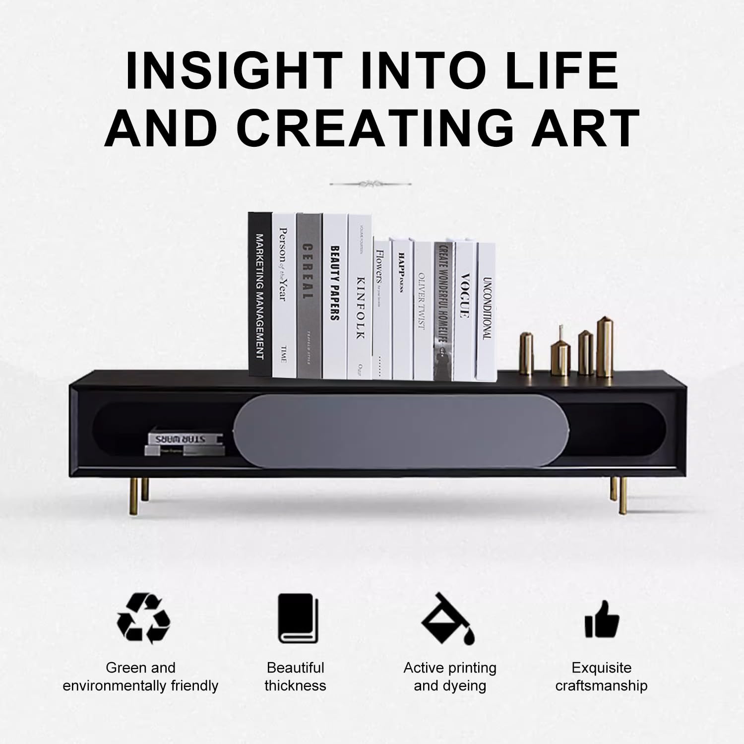So einfach wird's stylisch! Diese 6 Deko-Bücher sind eigentlich clever designte Attrappen aus stabilem Karton - aber sie sehen täuschend echt aus! Einfach zusammenfalten und schon verwandelst du jedes Regal, jeden Couchtisch oder Nachttisch in einen echten Hingucker. Das schwarz-weiße Design passt zu jedem Einrichtungsstil - ob modern, skandinavisch oder industrial. Die vier großen Bücher messen 26,7x17x4,2cm, die zwei kleinen 24x14x3,4cm. Perfekt zum Stapeln, Arrangieren oder als Geheimversteck für kleine Wertgegenstände. Übrigens: Das sind keine echten Bücher, sondern reine Deko-Objekte ohne Seiten. Super einfach zu montieren - einfach falten und hinstellen. Mach dein Zuhause mit diesen stylischen Buch-Attrappen noch gemütlicher und persönlicher!