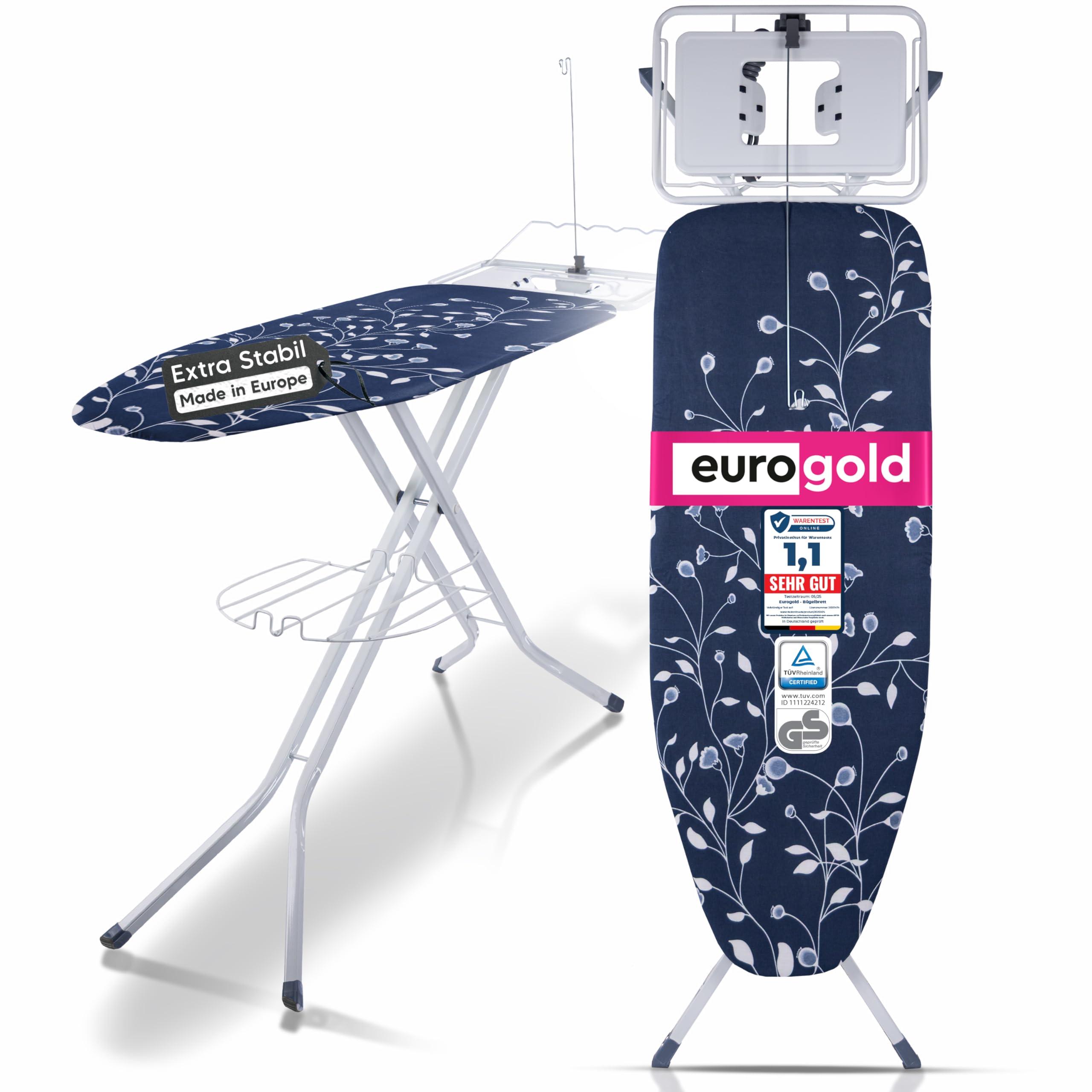 • EUROGOLD XXL Bügelbrett 130x48cm Mit Ablage & Steckdose - Made In Europe