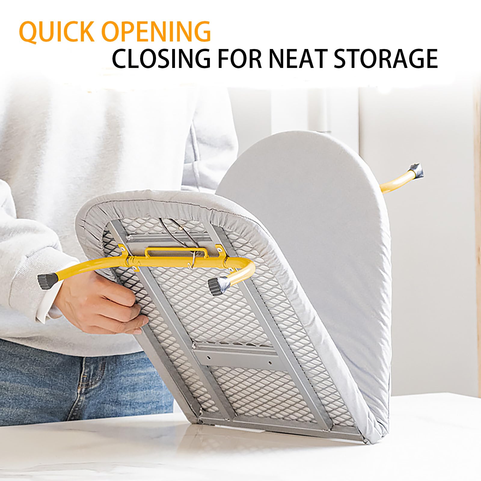 Platzsparendes Bügeln war noch nie so einfach! Dieses klappbare Bügelbrett von NEWFUN ist die perfekte Lösung für kleine Wohnungen. Maße: 89x33cm aufgeklappt - kompakt zusammengeklappt. Aus robustem Kohlenstoffstahl mit grauem Baumwollbezug - stabil und langlebig. Mit praktischem Bügeleisen-Halter für sicheres Abstellen. Kann platzsparend an der Wand aufgehängt oder im Schrank verstaut werden. Einfach aufklappen und sofort losbügeln - keine Montage nötig. Die hohle Konstruktion sorgt für gute Belüftung und Wärmeableitung. Perfekt für Studentenwohnheime, kleine Apartments oder Reisen. Der Bezug ist abnehmbar und waschbar - immer hygienisch sauber. Mach Bügeln auch in beengten Verhältnissen zum Kinderspiel! Einfach bestellen und dem Bügel-Chaos ein Ende setzen. Dieses Bügelbrett ist die intelligente Lösung für alle mit wenig Stauraum.