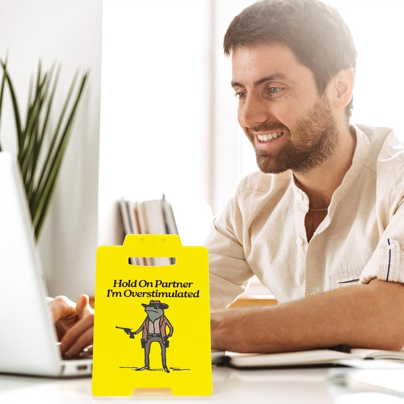 Humorvolle Abgrenzung für stressige Tage! Dieses 3D-gedruckte Schreibtischschild mit der Aufschrift 'Hold on Partner Im Overstimulated' bringt Lächeln in dein Büro. Perfekt für alle, die mal ungestört arbeiten möchten - aber mit einem Augenzwinkern! Das hochwertige Material ist langlebig und die leuchtenden Druckfarben verblassen nicht. Mit ca. 10x4,5 cm ist das Schild kompakt aber auffällig genug, um seine Botschaft zu vermitteln. Ob im Großraumbüro, Home Office oder Besprechungsraum - dieses Schild schafft eine lockere Atmosphäre und verbessert das Arbeitsklima. Ein tolles Geschenk für Kollegen, Mitarbeiter oder einfach für dich selbst, um deinen Arbeitsplatz persönlicher zu gestalten!