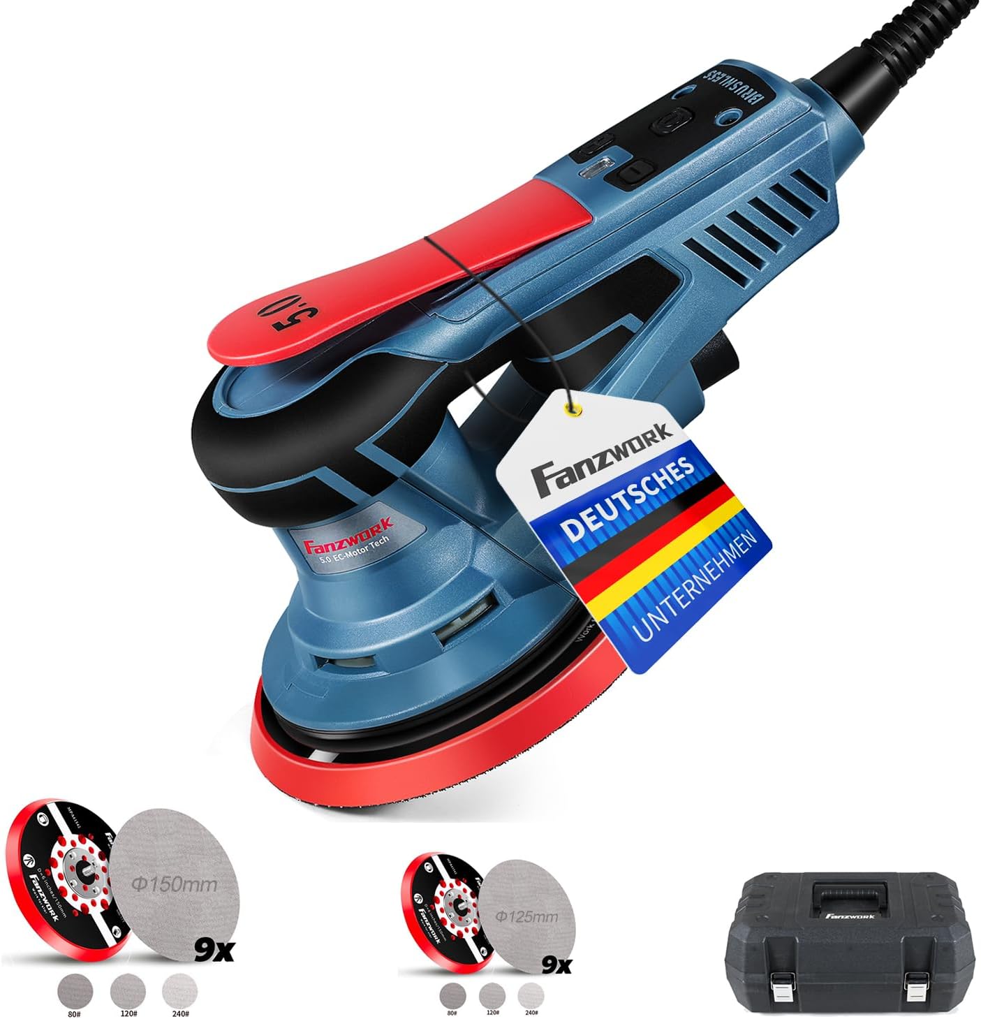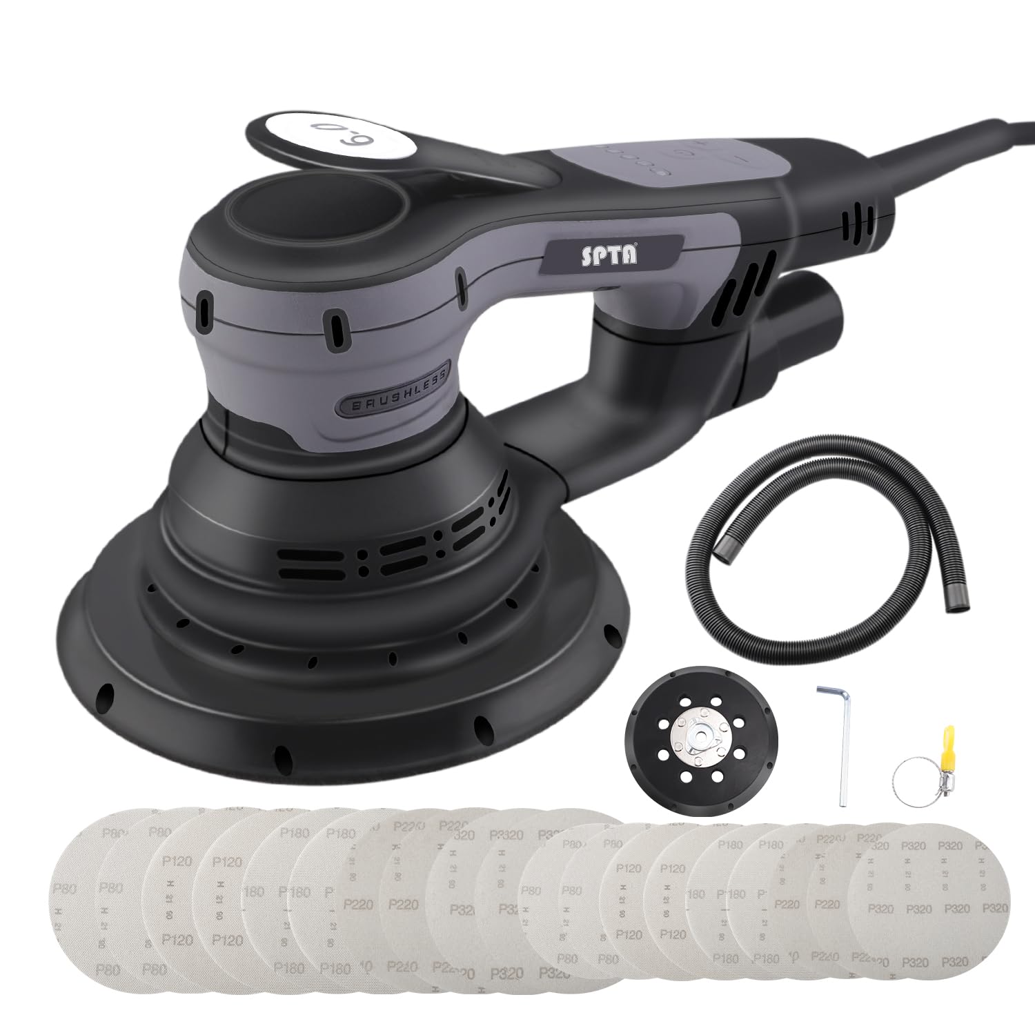 • SPTA Exzenterschleifer 380W - Bürstenloser Schleifer Mit 125mm/150mm Schleifteller