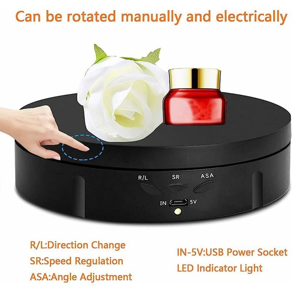 Boah, dieser elektrische Drehteller ist ja mal richtig praktisch! Mit 30cm Durchmesser und satten 100kg Belastung kann der echt was. Perfekt um Sachen zu präsentieren: Uhren, Snacks, Schuhe, Sportgeräte, Modelle, Figuren - was auch immer. Die Fernbedienung ist der Knaller: Aus 3 Metern Entfernung steuerst du alles! Geschwindigkeit ändern, Drehrichtung wechseln (im oder gegen Uhrzeigersinn), kontinuierlich oder intermittierend drehen - und du kannst sogar den Rotationswinkel einstellen. Einfach '8' drücken und er dreht nur 45°. Wichtig: Das Objekt sollte nicht größer sein als der Teller selbst, der Schwerpunkt muss mittig sein und nicht höher als 1,5m. Dann dreht er schön stabil. Im Lieferumfang ist alles dabei: Der Drehteller, 5 farbige Hintergrundplatten, Fernbedienung, Adapter und Anleitung. Kleiner Tipp: Die Fernbedienung sollte immer in Richtung des Empfängers am Teller zeigen, ohne dass was dazwischen ist. So klappt's perfekt!