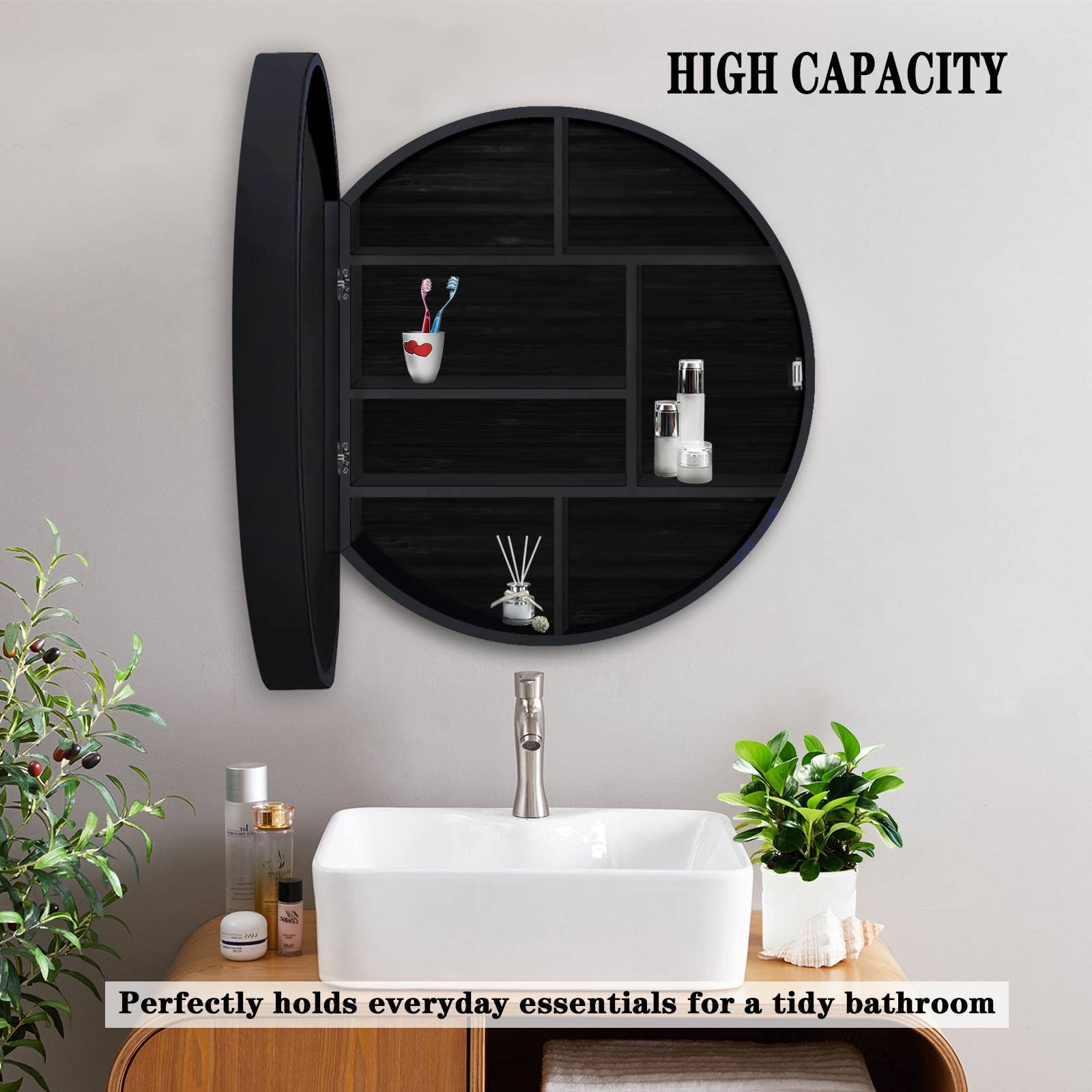 Dieser runde Spiegelschrank fürs Badezimmer ist einfach nur stylisch und mega praktisch! In Holzfarbe aus hochwertigem Massivholz gefertigt, mit handgefertigter Biegetechnik - keine Risse für Jahre! Der Spiegel ist hochauflösend, verzerrungsfrei, wasserdicht, beschlagfrei und explosionssicher. Mit Schiebetüren die platzsparend sind und 7.5cm tiefen Stauraum bieten - perfekt für Zahnbürsten, Kosmetik und Bad-Utensilien. Maße: 70cm Durchmesser, benötigt ca. 100cm Gesamtbreite inklusive Öffnungsraum. Einfache Wandmontage mit enthaltenen Aufhängeleisten und Schrauben. Nicht nur fürs Badezimmer, sondern auch für Schminktisch, Wohnzimmer oder Flur geeignet. Das runde Design ist ein echter Hingucker und passt zu modernen wie auch klassischen Einrichtungsstilen. Damit bleibt dein Badezimmer aufgeräumt und du hast alles griffbereit. Einfach montieren, einräumen und sich über mehr Ordnung und Stil freuen! 1 Jahr Garantie gibt dir zusätzliche Sicherheit.