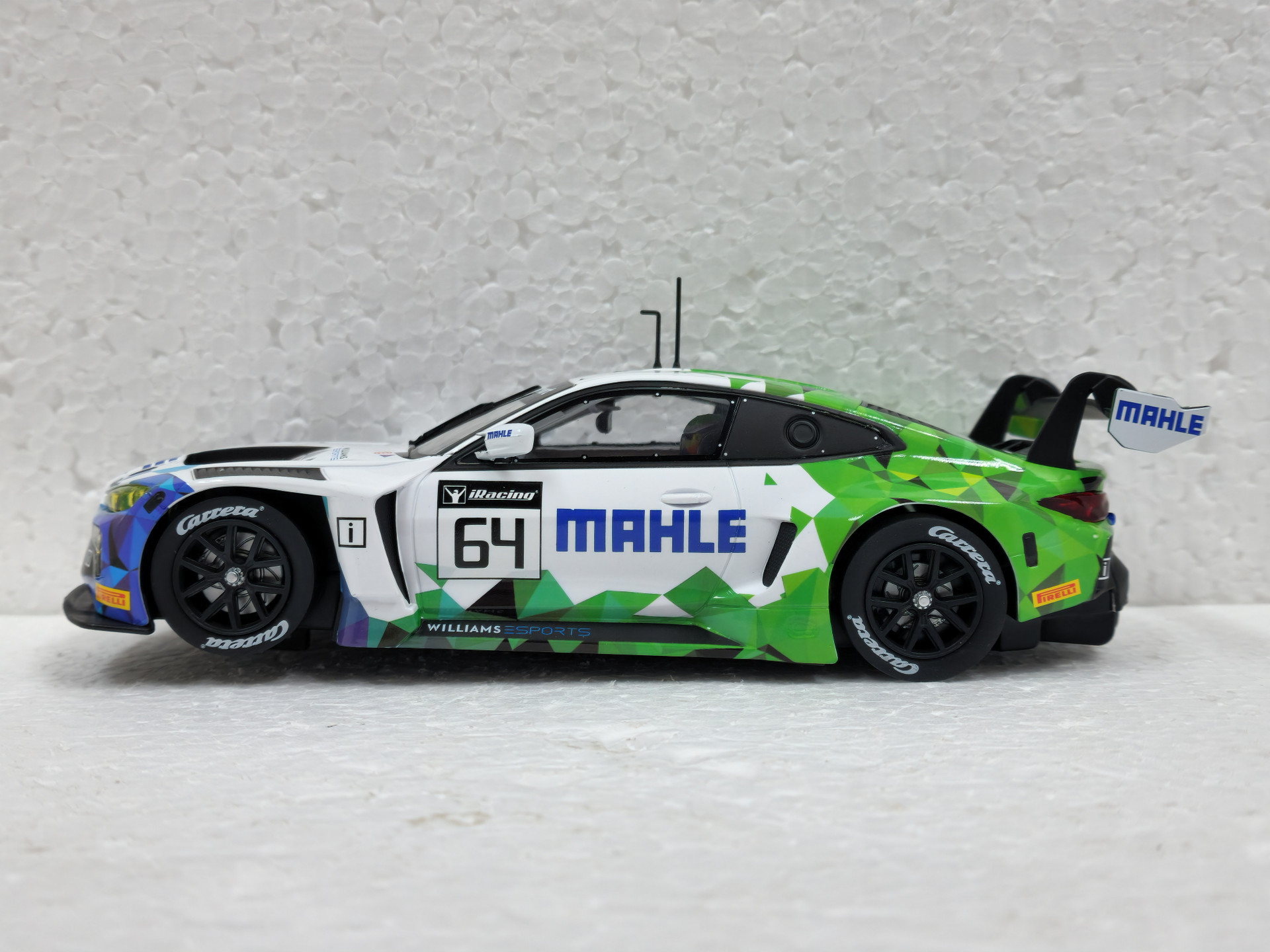 Rennfeeling pur mit diesem Carrera Hybrid BMW M4 GT3! Das detailgetreue Modell im Maßstab 1:50 begeistert mit funktionierenden Front- und Rücklichtern. Sieht aus wie das echte Rennfahrzeug vom Mahle Racing Team!