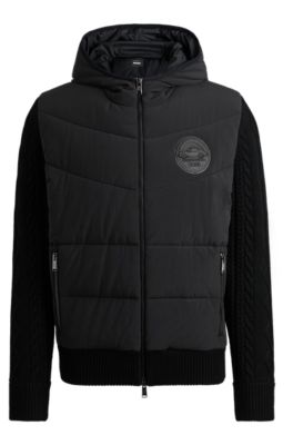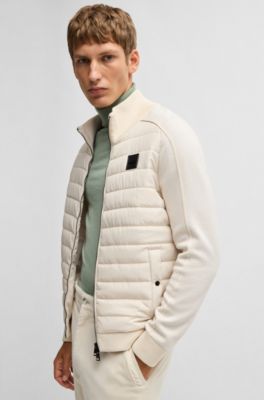 Stylische BOSS Jacke für Herren in Dunkelblau, Größe L! Die H-Hernesto Jacke überzeugt mit ihrem gemischten Material und der wattierten Vorderseite - perfekt für kühlere Tage. Im Regular Fit sitzt sie angenehm und nicht zu eng.
