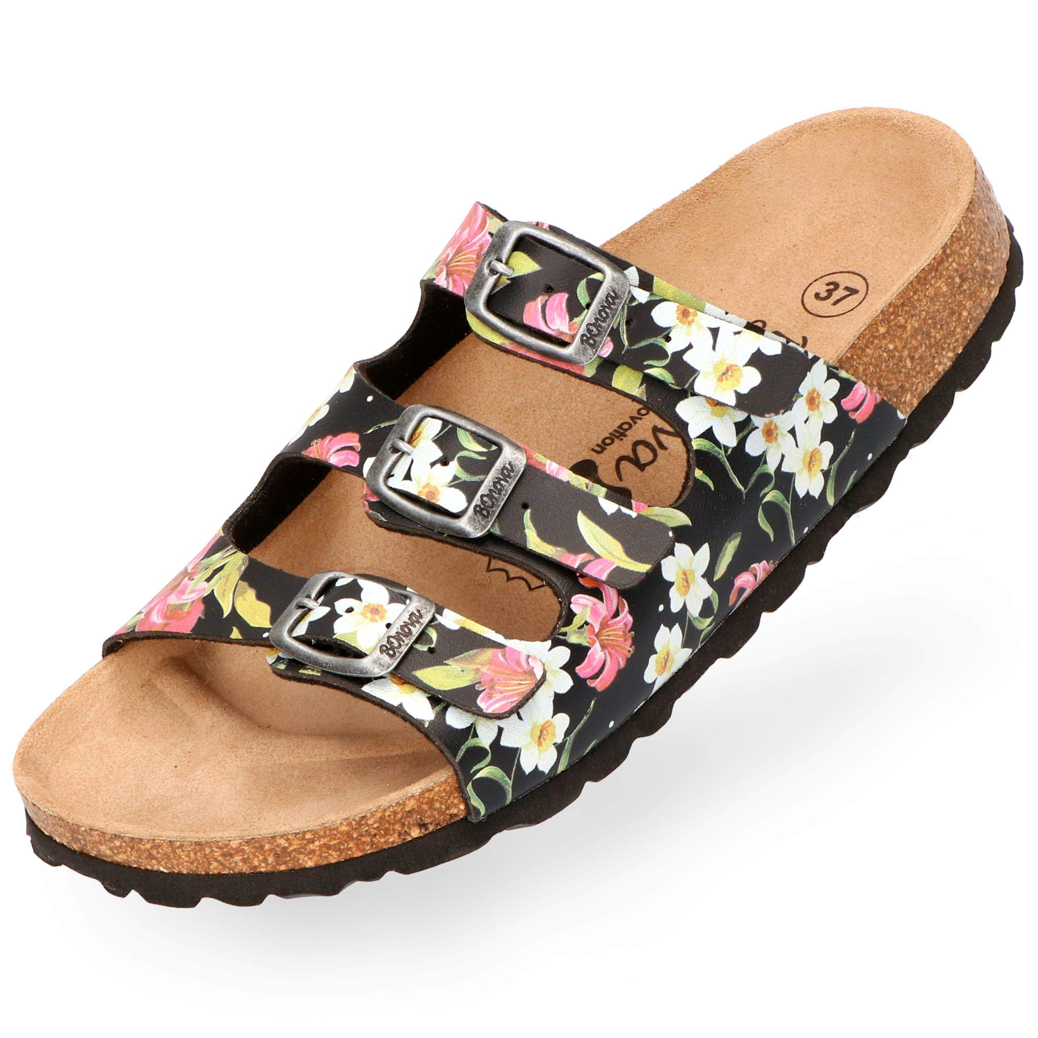 Ach, diese BOnova Pantoffeln sind einfach nur himmlisch! Hergestellt in ner kleinen Manufaktur in Spanien, fühlt sich das Tragen an wie Barfußlaufen am Strand. Das spezielle BOnoflor-Material ist hautfreundlich und pflegeleicht - einfach mal abwaschen wenn was daneben geht. Das Korkfußbett verteilt dein Gewicht perfekt und sorgt für ne natürliche Abrollbewegung. In 7 verschiedenen Farben von Größe 35-43 ist für jeden was dabei! Die Riemen mit nickelfreier Schnalle kannst du individuell anpassen. Perfekt für zuhause, Büro, Urlaub - einfach überall! Wenn du zwischen zwei Größen schwankst, nimm lieber die kleinere. Ökologisch produziert mit nachwachsenden Rohstoffen und ganz viel Handarbeit. Deine Füße werden dich lieben!