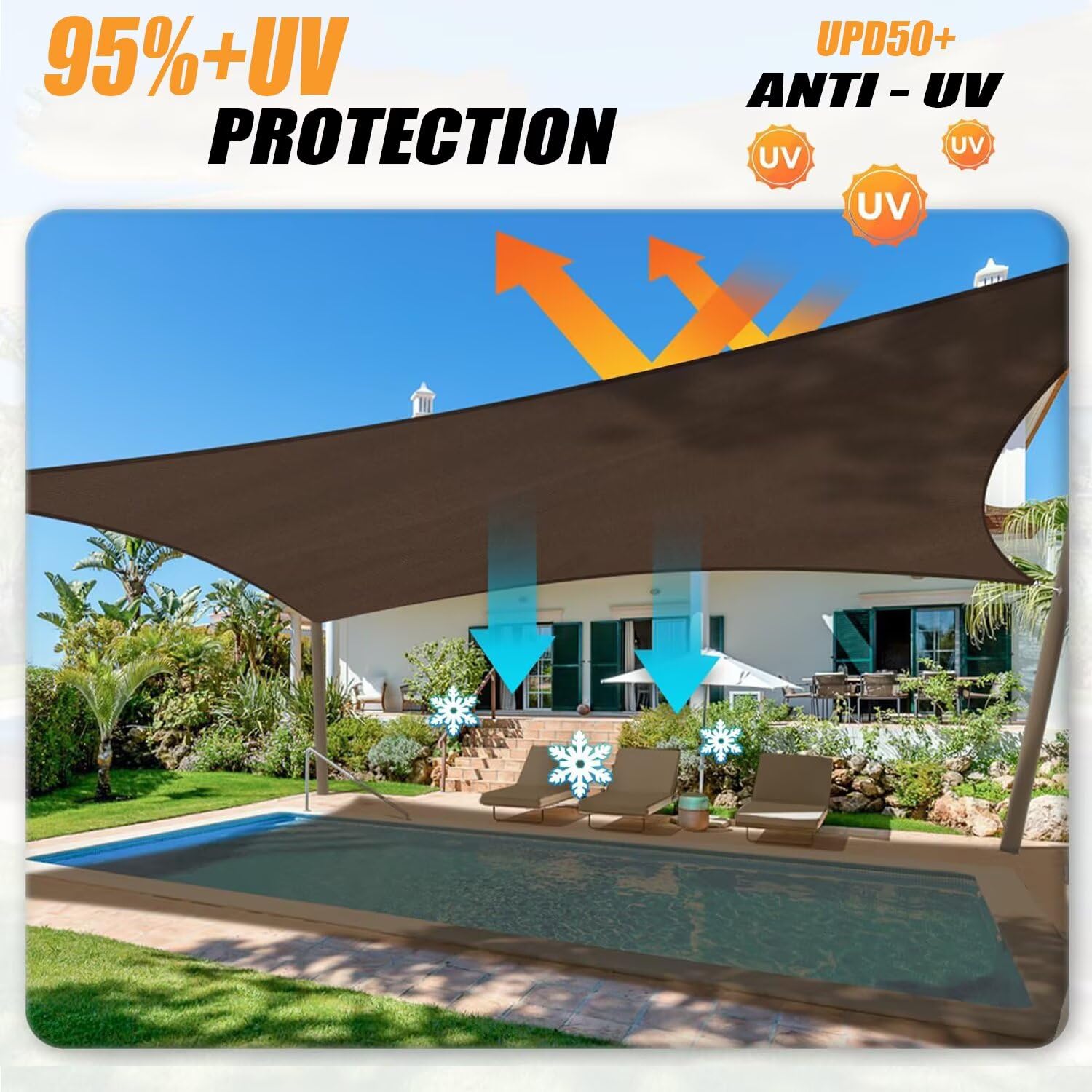 Endlich Schatten im Garten! Dieses dreieckige BURI-Sonnensegel in warmem Beige (415x415x415 cm) verwandelt deine Terrasse in eine gemütliche Wohlfühl-Oase. Mit UV-Schutz 50+ blockiert es bis zu 95% der schädlichen Strahlen - perfekt für heiße Sommertage! Aus robustem Polyester gefertigt, ist es witterungsbeständig und wasserabweisend (Regen perlt einfach ab). Die vier Metallfedern und Karabiner sorgen für stabilen Halt auch bei Wind, und das 10 Meter lange Spannseil lässt sich individuell anpassen. Mit nur 1,8 kg superleicht zu montieren und platzsparend zu verstauen. Ob über der Sitzecke, dem Sandkasten oder der Pool-Liege - dieses Sonnensegel macht jeden Außenbereich sofort sommerlich und einladend! Einfach aufhängen und den Sommer in vollen Zügen genießen!