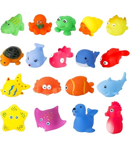 Badefreude für die Kleinsten! Dieses süße 4er-Set Badespielzeug macht jede Badewanne zum Abenteuer. Speziell für Kinder ab 18 Monaten entwickelt, fördert es spielerisch die Sinneswahrnehmung und motorische Entwicklung. Die tierischen Formen wecken die Neugier und die bunten Farben ziehen magisch an. Besonders praktisch: Die geschlossene Oberfläche verhindert, dass Wasser eindringt - kein Schimmel mehr in den Spielzeugen! Einfach zu reinigen und hygienisch sauber. Die weichen Gummimaterialien sind beißfest und sicher für Babys. Ob in der Badewanne, im Planschbecken oder Pool - diese Spielzeuge schwimmen fröhlich vor sich hin und sorgen für stundenlangen Badespaß. Mach das Baden zum Highlight des Tages!