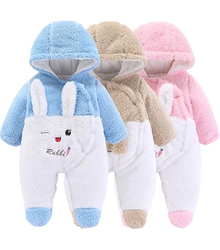 • Baby Schneeanzug Winter Overall - Fußstrampler Mit Kapuze Für Jungen & Mädchen 0-24 Monate