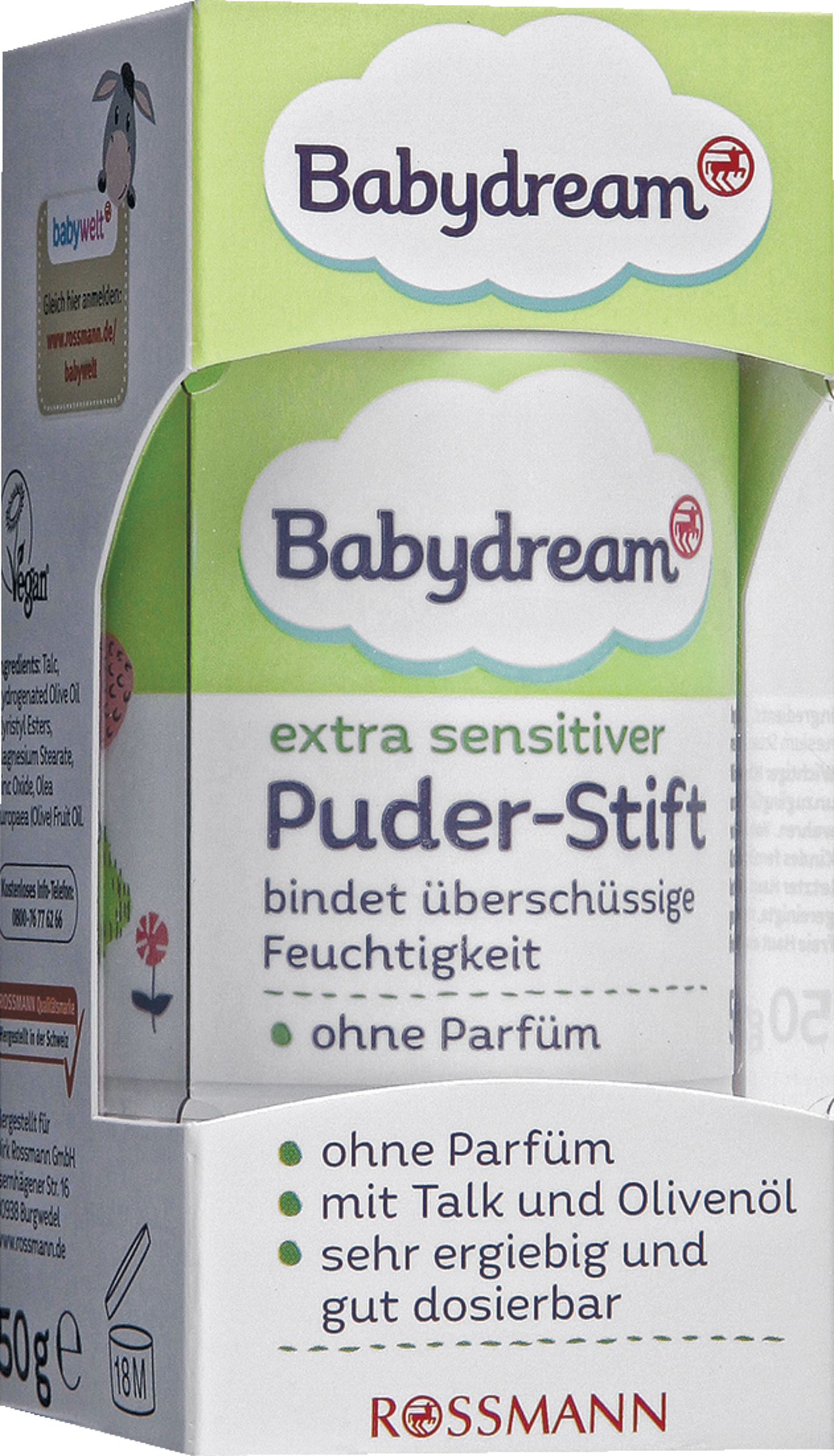 Sanfte Pflege für zarte Babyhaut! Das Babydream Extra Sensitiv Puder im praktischen 2er-Pack ist speziell für empfindliche Haut entwickelt. Mit Jojobaöl und Allantoin pflegt es sanft und beugt Irritationen vor. 100% parfümfrei und hypoallergen - dermatologisch bestätigt! Saugt Feuchtigkeit super auf und hilft gegen Windelausschlag. Hinterlässt ein seidig-weiches Hautgefühl ohne zu reizen. Von Rossmann - deutsche Qualität die vertraut ist. Einfach eine dünne Schicht auf die trockene Haut auftragen. Aber Vorsicht: Von Nase und Mund fernhalten und für Kinder unzugänglich aufbewahren!
