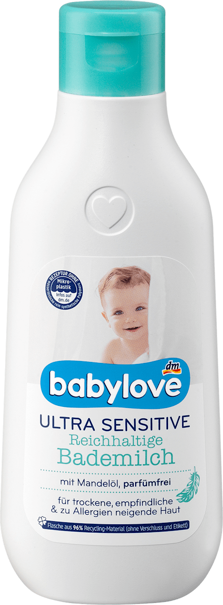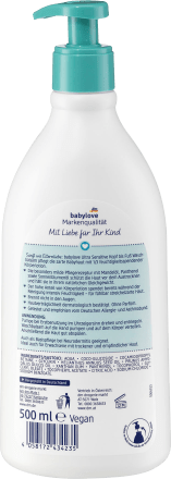 Mama, Papa - dieser Babylove Ultra Sensitive Waschbalsam ist perfekt für zarte Babyhaut! Speziell für empfindliche Haut entwickelt - schon ab der Geburt geeignet. Mit wertvollem Mandelöl, Panthenol und Sonnenblumenöl - pflegt während des Waschens. Parfümfrei und ohne Alkohol - kein Brennen in den Augen! Vom Deutschen Allergie- und Asthmabund getestet und empfohlen - also absolut vertrauenswürdig. Vegan und mit praktischer Pumpflasche - einfach zu dosieren. Ein Drittel Körperlotion in der Formel - Haut wird nicht austrocknet. Einfach aufpumpen, sanft einmassieren und abspülen - schon ist das Baby sauber und gepflegt!