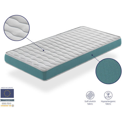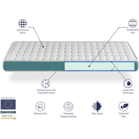 Diese SONHO Babymatratze ist perfekt für dein Kleines! Maße 60x120cm, 11cm hoch. Zwei Liegeflächen: Oberseite mit 3D-Graustoff (atmungsaktiv), Unterseite mit Wabenstoff. PU-Schaumkern mit 23kg/m³ Dichte für optimale Unterstützung. Hypoallergen und anti-Milben. Für Babys von 0-36 Monaten bis 20kg. Von Kinderärzten empfohlen! Gerollt geliefert - einfach auspacken und aufstellen. Garantiert gesunden, erholsamen Schlaf für dein Baby. Einfach wenden bei Bedarf. Made in Europe mit höchsten Qualitätsstandards. Dein Baby wird sich pudelwohl fühlen!