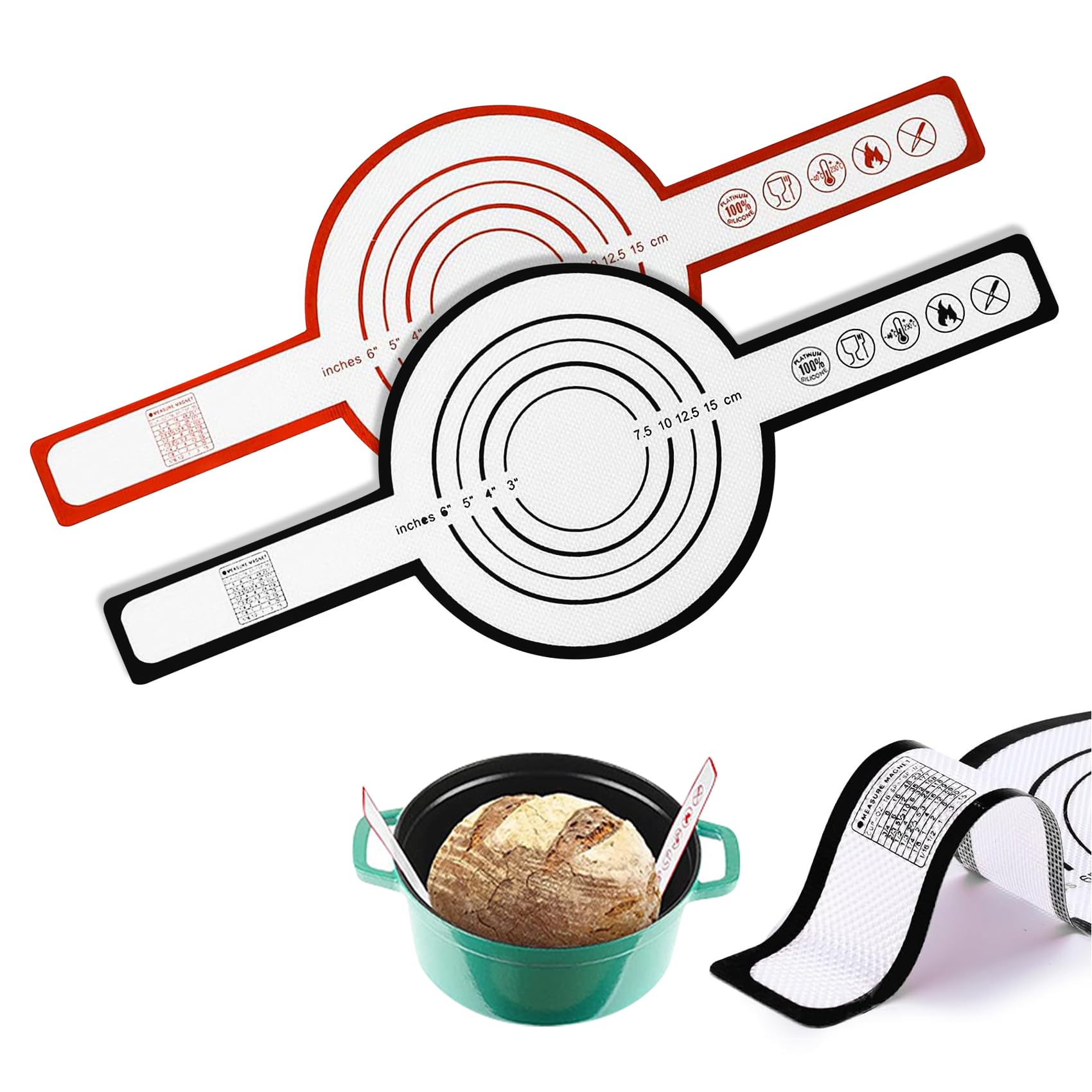 Total praktisch dieses 2-teilige Backmatten-Set! Eine runde und eine ovale Matte - perfekt für Baguette, runde Brote, Pizza, Kekse und vieles mehr. Aus lebensmittelechtem Silikon, hitzebeständig von -40°C bis 230°C. Die Antihaft-Oberfläche sorgt dafür, dass nichts anklebt - kein Einfetten mehr nötig! Mit verlängerten Griffen super easy aus dem Ofen zu holen. Spülmaschinenfest und leicht zu reinigen. Die rutschfeste Struktur hält sicher auf dem Backblech. Für Ofen, Mikrowelle und sogar gusseiserne Pfannen geeignet. Ein Must-Have für alle Hobby-Bäcker! • 2 Matten: Rund (56x21cm) & Oval (58x16cm) • Lebensmittelechtes Silikon • Hitzebeständig -40°C bis 230°C • Antihaft • Spülmaschinengeeignet