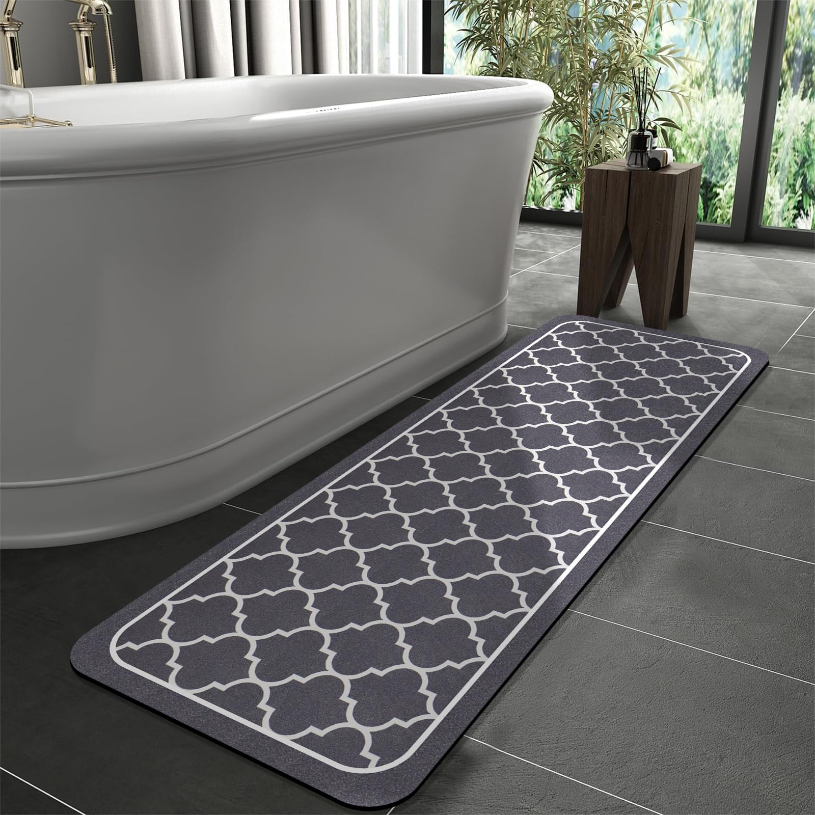 Schluss mit nassen Füßen nach dem Duschen! Diese super saugfähige Badematte mit Kieselgur-Technologie saugt Wasser im Nu auf und trocknet blitzschnell. Die weiche Oberfläche aus High-Tech-Stoff fühlt sich angenehm an den Füßen an, während der Kieselalgengummischaumkern für maximale Saugkraft sorgt. Die rutschfeste Gummi-Unterseite mit strukturiertem Design gibt dir sicheren Halt - kein Verrutschen mehr auf nassen Fliesen! Die Matte ist nicht nur super praktisch, sondern auch umweltfreundlich hergestellt. Sie ist kratzfest, verschleißfest und bietet trotzdem Mikroelastizität für extra Komfort. Perfekt fürs Badezimmer, aber auch super für die Küche, Waschküche oder vor der Haustür. Mit 90x120 cm ist sie groß genug für die ganze Familie. Einfach zusammenrollen und platzsparend verstauen - die perfekte Matte für alle, die Wert auf Sicherheit und Trockenheit legen!