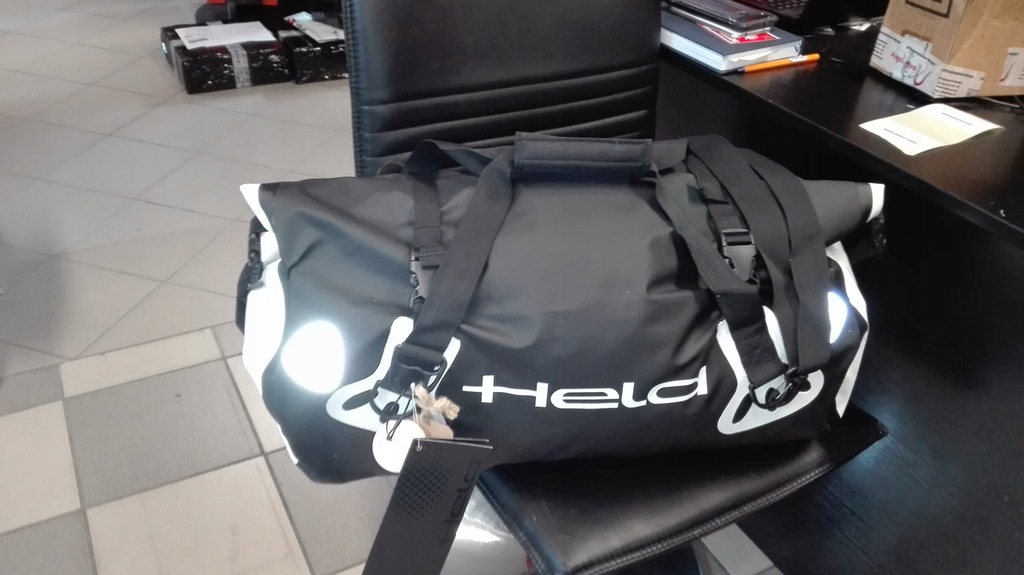 Perfekt für unterwegs! Die Held Carry-Bag ist dein zuverlässiger Begleiter für Reisen, Motorradtouren oder den Alltag. Mit 30 Liter Fassungsvermögen (50x25 cm) bietet sie genug Platz für Kleidung, Schuhe und alles, was du brauchst. Das spezielle PVC-Tarpaulin Material ist komplett wasser- und staubdicht - deine Sachen bleiben auch bei Regen trocken. Der variable Roll-Klickverschluss sorgt für sicheren Verschluss, während die verschweißten Nähte maximale Stabilität garantieren. Praktisch: Der abnehmbare Schultertragegurt und der komfortable Tragegriff. Reflektierende Elemente erhöhen deine Sichtbarkeit bei Dunkelheit. Ob für den Wochenendtrip, Sportausrüstung oder als Motorrad-Gepäck - diese Tasche meistert alles! Robust, praktisch und stylisch in schwarz-weiß.