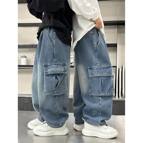 Jungs, diese Baggy Jeans ist voll im Trend! Der loose Fit mit weitem Bein und Cargo-Taschen an den Oberschenkeln sieht nicht nur cool aus, sondern ist auch super praktisch. Der elastische Bund drückt nicht und gibt volle Bewegungsfreiheit zum Toben und Spielen. Aus weichem Denim mit Stretch, verstärkten Kniepartien und doppelt genähten Nähten für extra Langlebigkeit. Perfekt für Schule, Spielplatz oder Freizeit - kombiniert mit Sneakern und Hoodies. In Größen für Jungen von 4-12 Jahren (120-170 cm). Maschinenwaschbar bei 40°C und formstabil. Dein neuer Liebling für jeden Tag!