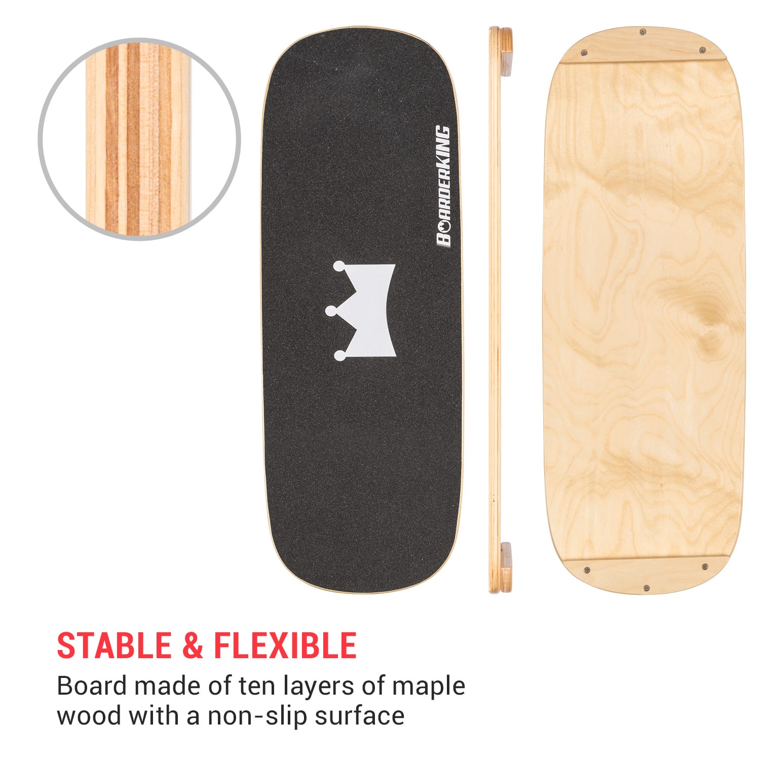 Bring dein Gleichgewicht auf die nächste Stufe mit dem Dnkelar Balance Board! Dieses 2-in-1-Set aus hochwertiger Birke ist ein echter Allrounder für Fitness und Sport. Enthalten sind Balance-Board, Rolle und Ball für 6 verschiedene Herausforderungsmodi. Mit 4 magnetischen abnehmbaren Stoppern kannst du den Schwierigkeitsgrad individuell anpassen. Das Board hält bis zu 200kg aus und die rutschfeste Oberfläche gibt sicheren Halt - ob mit Schuhen oder barfuß. Perfekt für Snowboarder, Surfer, Skateboarder oder einfach fürs tägliche Fitness-Training zu Hause. Verbessert Koordination, Rumpfstärke und Balance - egal ob du Anfänger oder Profi bist. Die Rollen schonen deinen Boden und der Vollgummi-Ball ist absolut dicht. Ideal für alle Boardsport-Begeisterten die auch indoor trainieren wollen, oder für jeden der seine Fitness verbessern möchte. Einfach aufstellen und loslegen - dein Körper wird es dir danken!