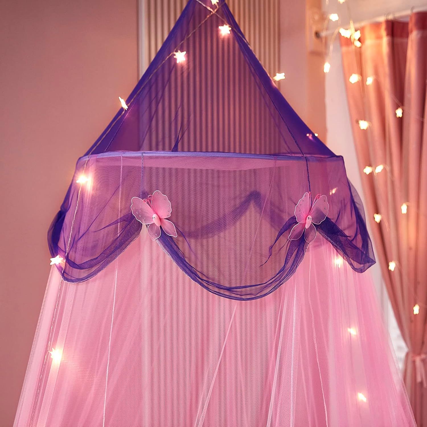 Verwandle das Kinderzimmer in ein märchenhaftes Reich! Dieser zarte rosa Betthimmel schützt nicht nur vor lästigen Mücken, sondern sieht auch noch wunderschön aus. Perfekt für kleine Prinzessinnen, die träumen und sich geborgen fühlen wollen. Das lange Netz aus 100% Polyester schafft eine gemütliche Atmosphäre und der breite Rosenring oben bietet Platz für Klammern mit Lieblingsspielzeug oder Fotos. Einfach mit dem mitgelieferten Haken an der Decke befestigen - schon ist das traumhafte Reich fertig! Ob zum Schlafen, Spielen oder Träumen - dieser Baldachin macht jeden Tag zum besonderen Erlebnis. Ein wunderbares Geschenk zur Geburt oder zum Geburtstag, das Kinderaugen zum Strahlen bringt!