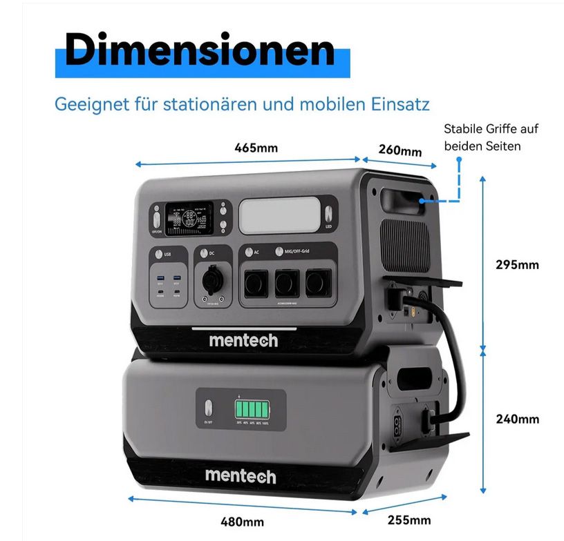 • Mentech BP2400 Balkonkraftwerk - 2048Wh Speicher Mit App-Steuerung