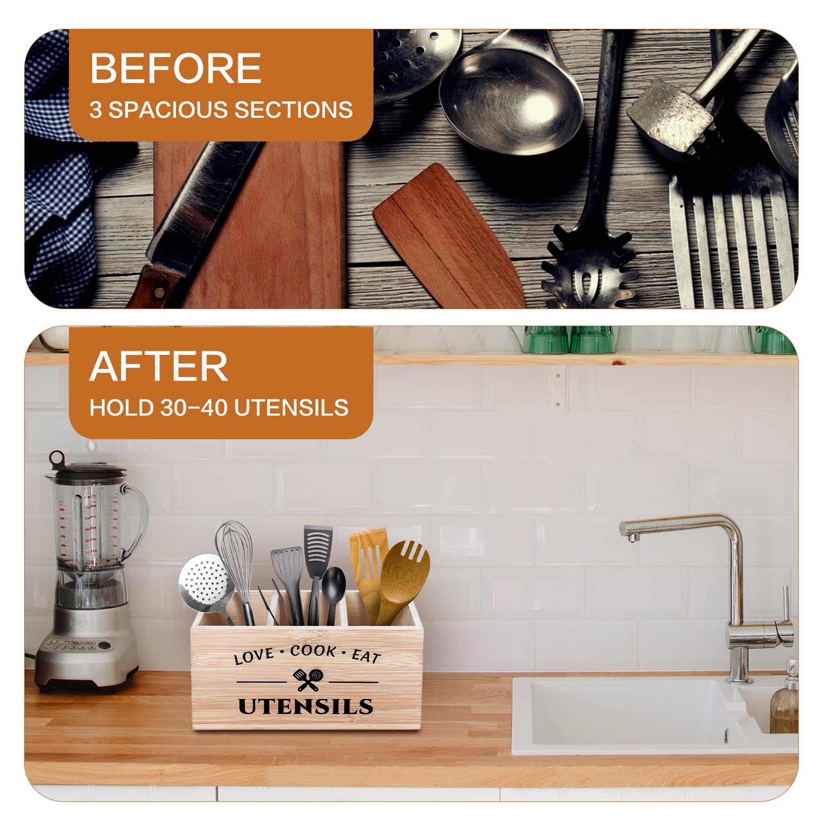 Dieser stylische Küchenutensilienhalter aus Bambus von SHILIPAIJC bringt Ordnung in deine Küche! Mit den Maßen 31,5x11,1x16cm bietet er in drei praktischen Fächern reichlich Platz für Kochlöffel, Schneebesen, Messer und andere Küchenhelfer. Das hochwertige Bambus-Material ist nicht nur umweltfreundlich, sondern auch extrem langlebig und stabil. Die abnehmbaren Trennwände und die Frontplatte machen die Reinigung super einfach - du kommst wirklich in jede Ecke. Besonders praktisch: Die Entwässerungslöcher am Boden verhindern lästige Wasseransammlungen. Die beidseitigen Griffe ermöglichen einfachen Transport, und die aufhängbare Rückseite gibt dir die Wahl zwischen Stehen und Hängen. Im schicken Schwarz und im rustikalen Bauernhaus-Design ist dieser Organizer nicht nur funktional, sondern auch ein echter Hingucker in jeder Küche. Einfach ein perfekter Helfer für mehr Ordnung und Style!