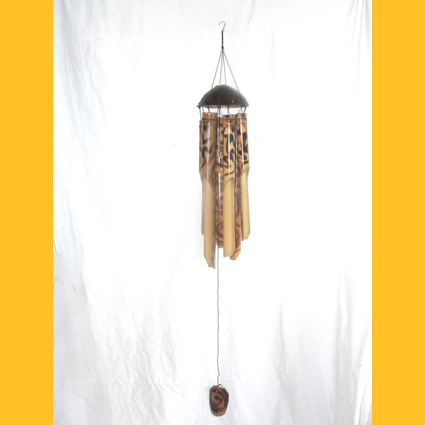 Naturentdecker, dieses Bambus-Windspiel bringt pure Entspannung in euren Garten! Mit 6 handgefertigten Bambusröhren in verschiedenen Größen - jede erzeugt ihren eigenen warmen, harmonischen Ton.\n\nDas längste Rohr misst 40cm - je größer das Rohr, desto tiefer und dunkler der Klang. Einfach wunderschön, wenn der Wind durch die Röhren streicht.\n\nAus natürlichen Materialien: Bambus und Kokosnussschale mit Kokosfaser. Jedes Stück ist ein Unikat mit geflammtem Muster - richtige Handwerkskunst!\n\nPerfekt für Garten, Balkon oder Terrasse. Aber auch innen als dekorative Türglocke super einsetzbar. Schafft sofort eine entspannte, meditative Atmosphäre.\n\nToll als Geschenk für Gartenliebhaber oder einfach für sich selbst. Einfach aufhängen und dem sanften Klang lauschen - Balsam für die Seele!\n\nHol dir dieses natürliche Klangerlebnis und genieße die beruhigende Wirkung - ihr werdet es lieben!