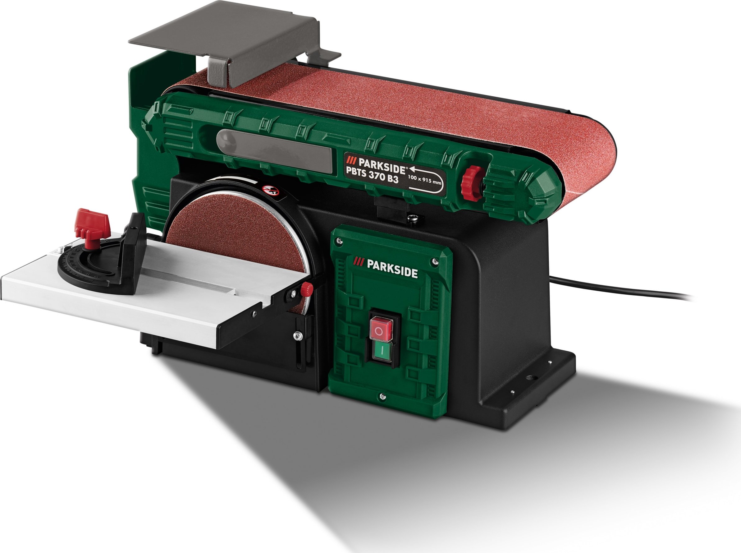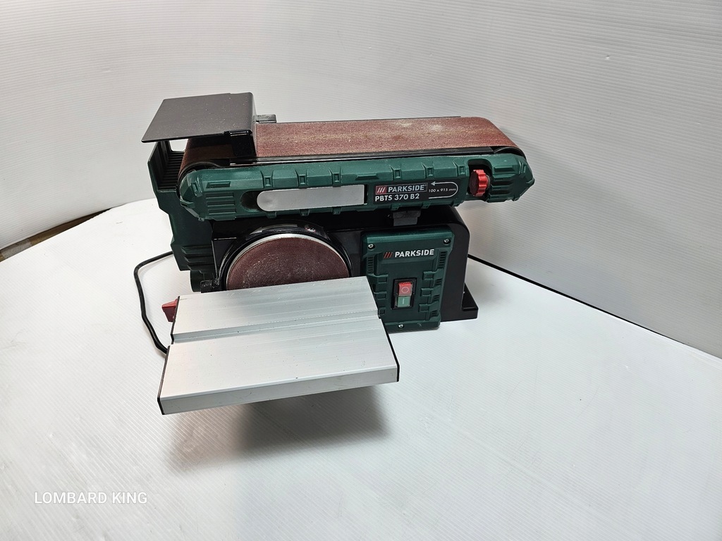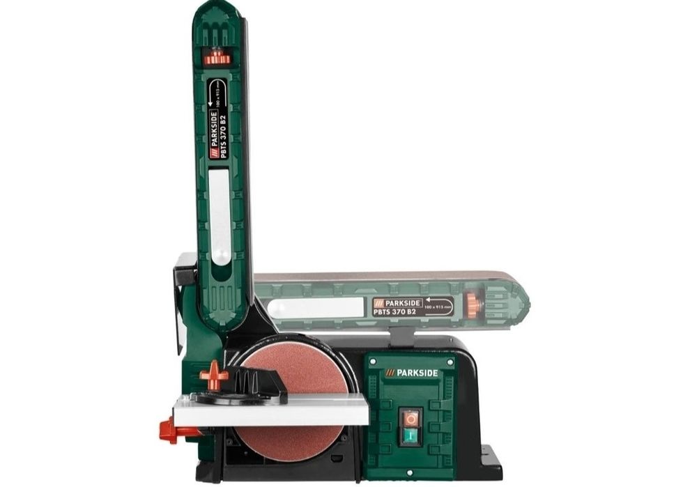 Für den perfekten Schliff in deiner Werkstatt! Dieser Parkside Bandschleifer ist ein echtes Arbeitstier. Mit 370W Motorpower und beiden Schleifvarianten: Band und Scheibe!\n\nDer schwenkbare Auflagetisch (0-45°) und der verstellbare Anschlag machen präzises Arbeiten super einfach. Die Staubabsaugung hält deine Werkstatt sauber - einfach den Staubsauger anschließen.\n\nLeistung: 370W Induktionsmotor\nSchleifband: 91,5x10cm, 7,5m/s\nSchleiftscheibe: Ø15cm, Klettverschluss\nDrehzahl: 2980 U/min\nMaße: 46x36x28cm\n\nInklusive Schleifband und Schleifpapier (Körnung 80) - sofort einsatzbereit! Ob Holz, Metall oder Kunststoff - damit bekommst du alles glatt.