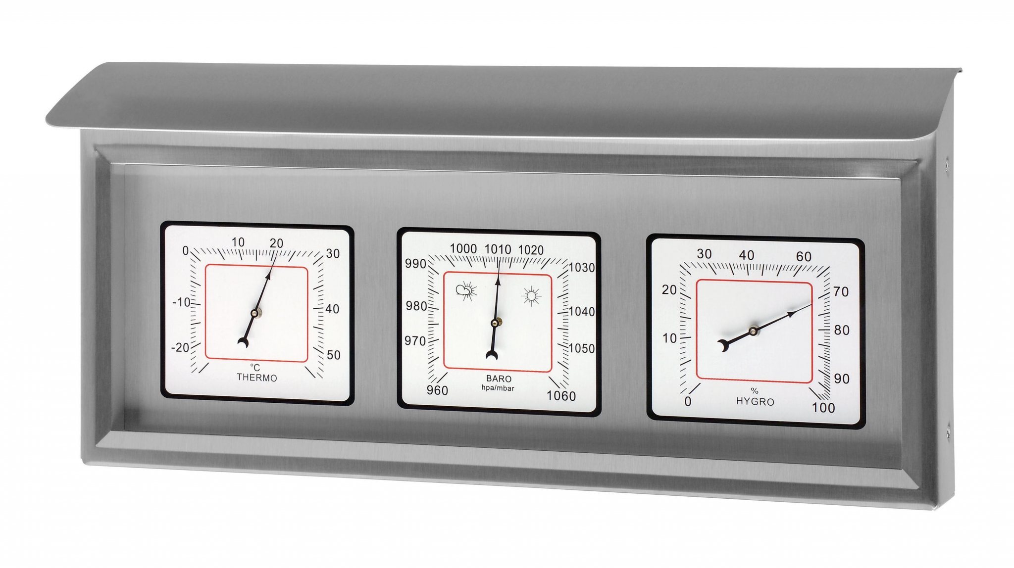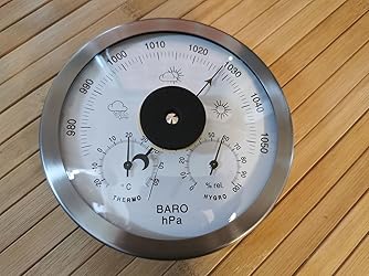 Diese analoge Wetterstation ist ein echter Hingucker und praktisch obendrein! Im eleganten Edelstahl-Rahmen mit 13,2cm Durchmesser vereint sie drei Instrumente in einem: Barometer für Luftdruck, Hygrometer für Luftfeuchtigkeit und Thermometer für Temperatur. Mit ±1% Genauigkeit liefert sie dir präzise Messwerte. Das Beste: Sie benötigt keine Batterien und ist absolut wartungsfrei. Korrosionsbeständig und für Temperaturen von -30°C bis +50°C geeignet - also ganzjährig einsetzbar. Perfekt für drinnen und draußen, ob auf dem Balkon, im Wintergarten oder Wohnzimmer. Die klaren Skalen und kontrastreichen Zeiger lassen sich auch aus 3m Entfernung gut ablesen. Ein klassisches Instrument das nicht nur gut aussieht, sondern auch zuverlässig funktioniert - für alle Wetter-Begeisterten!