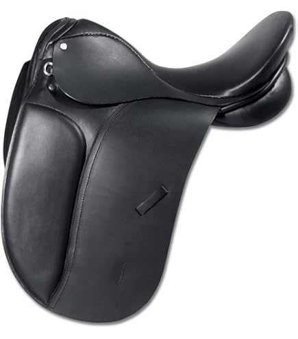 Wollgefüllte Sattelkissen und gepolsterte Kniepauschen sorgen für Komfort für Reiter und Pferd. Das lange Dressurblatt und die kurzen Gurtstrippen machen das Satteln zum Kinderspiel. Sogar Packtaschenringe sind schon dran!