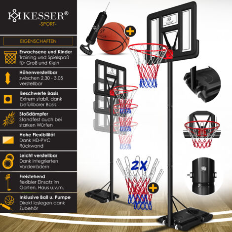 Basketball-Spaß für die ganze Familie! Dieser SAMAX Korb lässt sich super einfach von 100 bis 305 cm verstellen - perfekt für Kleinkinder und Erwachsene. Mit praktischen Rollen kannst du ihn überall hin schieben: Garten, Hof oder in die Einfahrt. Für stabilen Stand einfach den Fuß mit 36 Litern Wasser oder Sand befüllen. Das wetterfeste Nylon-Netz hält auch bei Regen stand. Die robuste Konstruktion macht intensives Spielen mit. Ob alleine, mit Freunden oder der Familie - mit diesem Basketballkorb wird's nie langweilig. Perfekt für drinnen und draußen!