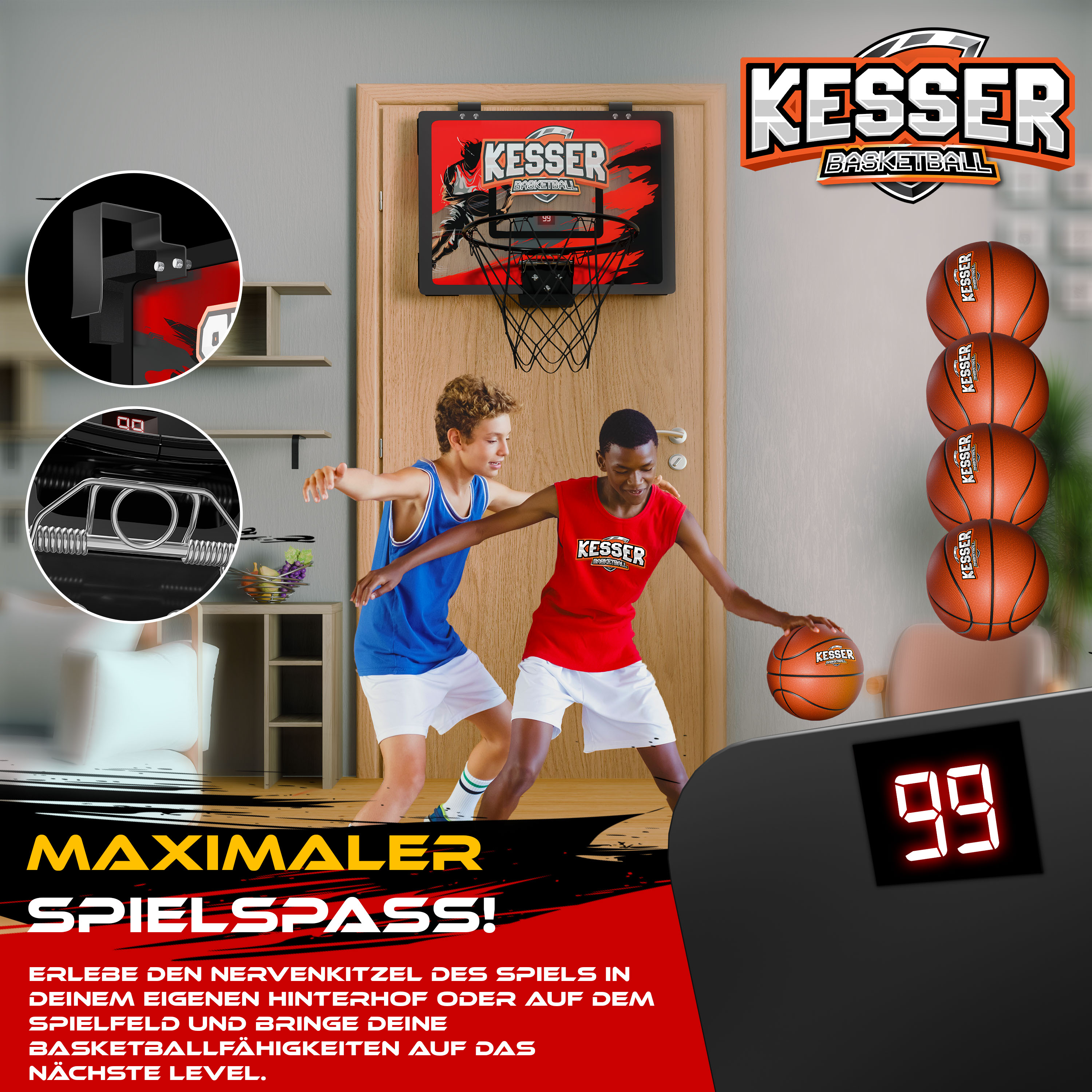 Wow, was für ein cooles Basketball-Set für die eigenen vier Wände! Dieser Mini-Basketballkorb macht nicht nur Kindern riesigen Spaß - auch Erwachsene können damit super entspannen. Das Set kommt komplett mit 4 Bällen, zwei Netzen, einer Luftpumpe und sogar einer elektronischen Punkteanzeige. Bei jedem Treffer ertönt Jubel und der Punktestand wird digital angezeigt - wie bei den Profis! Der Korb hat einen Federstahlring, der nach jedem Dunking sofort zurückfedert. Die Montage ist einfach und der Korb wird einfach über die Tür gehängt. Perfekt für Kinder von 3-12 Jahren, aber ehrlich gesagt haben auch Teenager und Eltern ihren Spaß damit. Super für Regentage oder wenn die Kids mal wieder zu viel Energie haben. Das Material ist robust und langlebig, hält also auch wildere Spiele aus. Ein fantastisches Geschenk für Geburtstage oder Weihnachten - damit macht Bewegung zu Hause richtig Laune! Die Bälle sind extra für Anfänger geeignet und helfen, die Koordination zu verbessern. Einfach aufbauen und losspielen - der Hit für jedes Kinderzimmer!