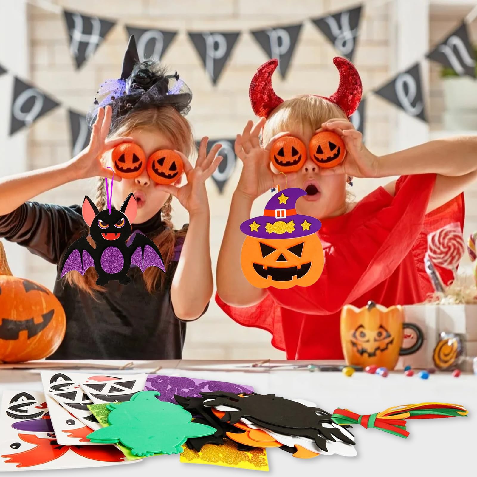 Halloween steht vor der Tür und du suchst nach einer kreativen Beschäftigung für die Kinder? Diese 6 Bastelsets sind genau das Richtige! Enthalten sind verschiedene Halloween-Motive wie Fledermaus, Kürbis, Spinne, Katze, Eule und Geist. Aus hochwertigem EVA-Moossgummi gefertigt, sind die Teile ungiftig und absolut kindersicher. Einfach die bunten Moosgummi-Teile auf die Vorlagen kleben, das bunte Band zum Aufhängen befestigen und schon haben die Kinder ihre eigenen Halloween-Dekorationen! Fördert die Kreativität, Feinmotorik und Konzentration - und macht dabei riesigen Spaß. Perfekt für Kindergeburtstage, Halloween-Partys oder einfach für verregnete Herbsttage. Die fertigen Anhänger sehen an Türen, Fenstern oder als Zimmerdekoration super aus. Ein tolles Geschenk für kleine Hexen und Gespenster - alle Materialien inklusive, sofort startbereit!