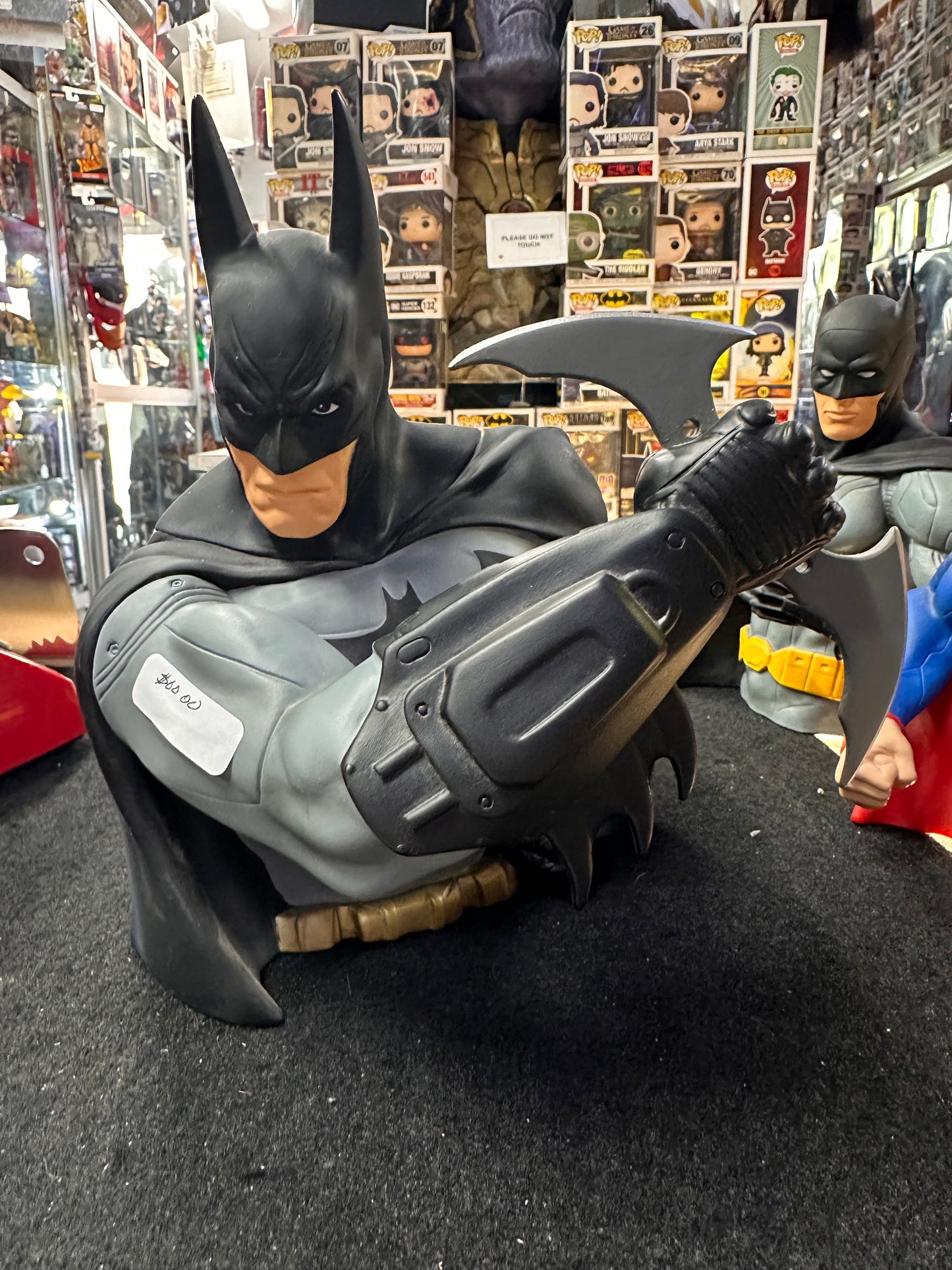 Für echte Batman-Fans und Sammler! Diese detailgetreue Batman-Büste basiert auf dem erfolgreichen Videospiel 'Batman: Arkham Asylum' und ist ein absolutes Must-Have. Mit 8 Zoll (ca. 20cm) Höhe macht die Vinyl-Figur auf jedem Schreibtisch oder in jeder Vitrine eine super Figur. Die aufwendige Gestaltung orientiert sich an den originalen CGI-Spieldateien - jedes Detail ist perfekt umgesetzt. Nicht nur eine tolle Deko, sondern auch praktisch als Sparbüchse für Kleingeld. Ein echter Hingucker fürs Gaming-Zimmer, Home-Office oder die Sammlung. Perfekt für alle, die den Dark Knight lieben oder nach einem besonderen Geschenk für Batman-Enthusiasten suchen. Hochwertige Verarbeitung und lebendige Farben machen diese Büste zu einem echten Sammlerstück. Ob als Geschenk oder für die eigene Sammlung - dieses Stück begeistert garantiert. Hol dir ein Stück Arkham-Asylum direkt ins eigene Zuhause!