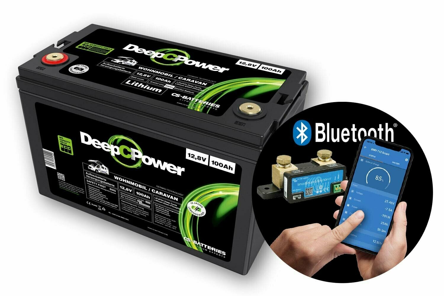 Energie-Power für dein Wohnmobil! Diese 12V 320Ah LiFePO4 Batterie mit 4096Wh Kapazität ist der perfekte Energielieferant für Camper, Wohnmobile und Off-Grid Anwendungen. Mit integriertem 250A BMS und APP-Überwachung per Bluetooth hast du deine Batterie-Performance immer im Blick. Das robuste Metallgehäuse ist schlag- und verschleißfest und leitet Wärme optimal ab. Beeindruckende 8000+ Zyklen bei 80% Entladetiefe und eine Lebensdauer von 10 Jahren machen diese Batterie zur langlebigen Alternative zu Blei-Säure-Batterien. Mit nur 69 lb Gewicht ist sie deutlich leichter als vergleichbare Blei-Batterien. Der 2,8 Zoll LCD Touchscreen zeigt alle wichtigen Daten in Echtzeit an. Kompatibel mit Victron Systemen und erweiterbar auf max. 4P4S für noch mehr Power. Inklusive 5 Jahren Garantie - dein zuverlässiger Partner für unvergessliche Roadtrips!