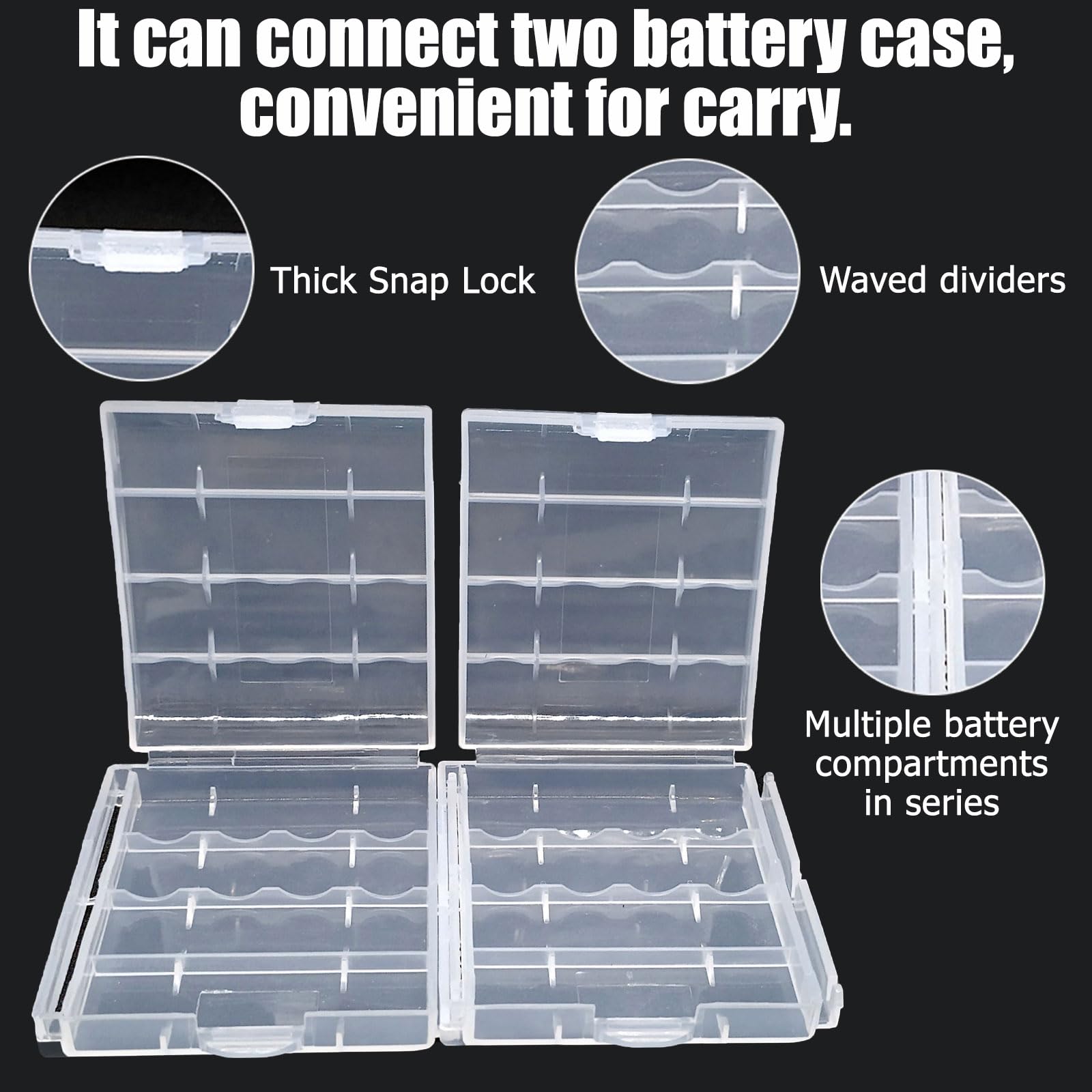 Das geniale Feature: Bajonett-Verschluss zum Verbinden mehrerer Boxen. So transportiert man sie super einfach. Verhindert Auslaufen und verlängert die Lebensdauer der Batterien.
