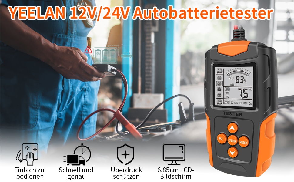 Nie wieder eine leere Batterie! Der SOARFLY Batteriewächter überwacht deine 12V-Autobatterie rund um die Uhr. Per Bluetooth 4.0 verbindet er sich mit deinem Smartphone (Android & iOS) - so siehst du Spannung, Ladezustand und Batterielebensdauer in Echtzeit, ohne die Motorhaube öffnen zu müssen. Testet automatisch Start- und Ladesystem und warnt bei Problemen. Nur 15 mA Stromverbrauch - belastet die Batterie kaum. Kompatibel mit allen 12V-Fahrzeugen: Auto, LKW, Motorrad, Wohnmobil. Einfache Installation: Rot an Pluspol, schwarz an Minuspol. Die App speichert Verlaufsdaten, Fahrzeiten und sendet sofortige Alarm bei Anomalien. Betriebstemperatur von -40°C bis 90°C - hält auch extremen Bedingungen stand. Mit diesem kleinen Wächter fährst du immer sorgenfrei!