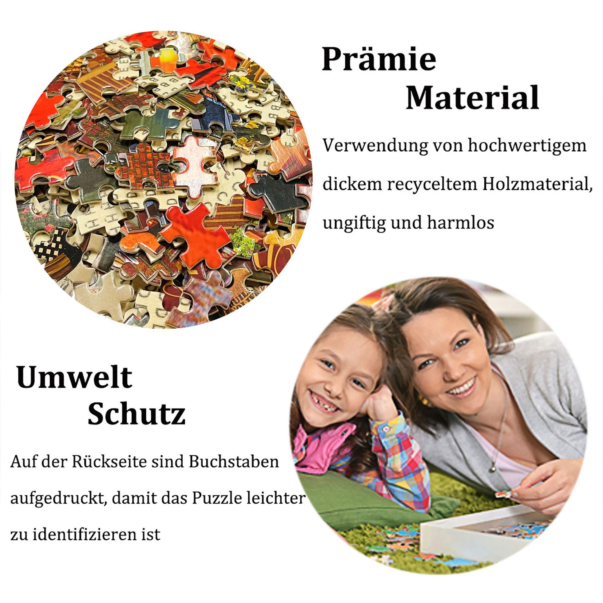 Entspannung pur mit diesem wunderschönen 1000-Teile-Puzzle! Das Motiv \Baum des Lebens\ in abstrakter Kunst ist eine echte Herausforderung - fertig wird's 70x50cm groß. Aus hochwertigem, recycelbarem Karton mit präzisem Zuschnitt - die Teile passen perfekt. Die Farben sind lebendig und kräftig, das Motiv voller Details. Auf der Rückseite sind Buchstaben-Markierungen, falls du Hilfe brauchst - oder ignoriere sie für mehr Challenge! Perfekt für gemütliche Abende, alleine oder mit Partner/Freunden. Stärkt die Konzentration, Geduld und gibt ein mega Erfolgserlebnis, wenn's fertig ist! Super gegen Stress und fürs Gehirntraining. Das Puzzle kommt in einer stabilen Box (20x20x5cm) - ideal zum Verschenken oder für deine eigene Sammlung. Suchst du ein neues Hobby oder einfach mal was ohne Bildschirm? Mit diesem Puzzle liegst du goldrichtig! Zeit für Quality-Time mit dir selbst oder deinen Liebsten.