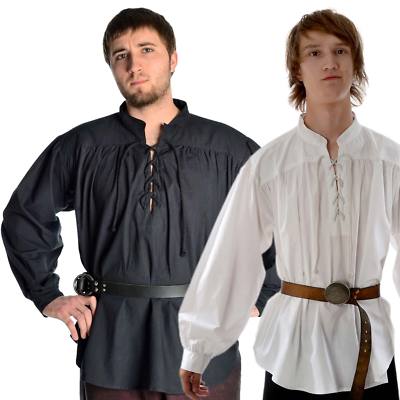 Mit dem typischen Stehkragen, der coolen Schnürung und den weiten Ärmeln siehst du aus wie direkt aus dem Mittelalter. Der Knopf aus echter Kokosnuss und die handgearbeiteten Manschetten machen jedes Hemd zu einem Unikat.
