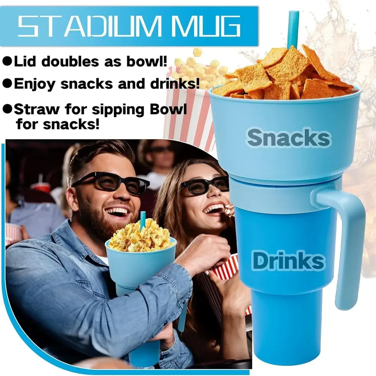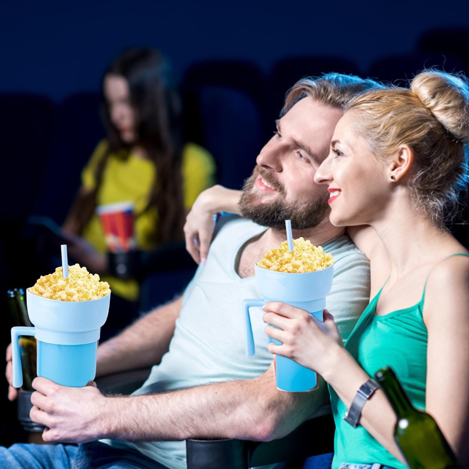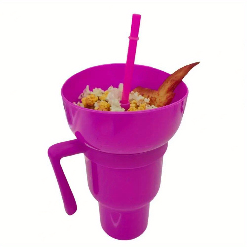 2-in-1 Snack & Drink Becher - Mit Schüssel Und Strohhalm Für Kino & Reisen