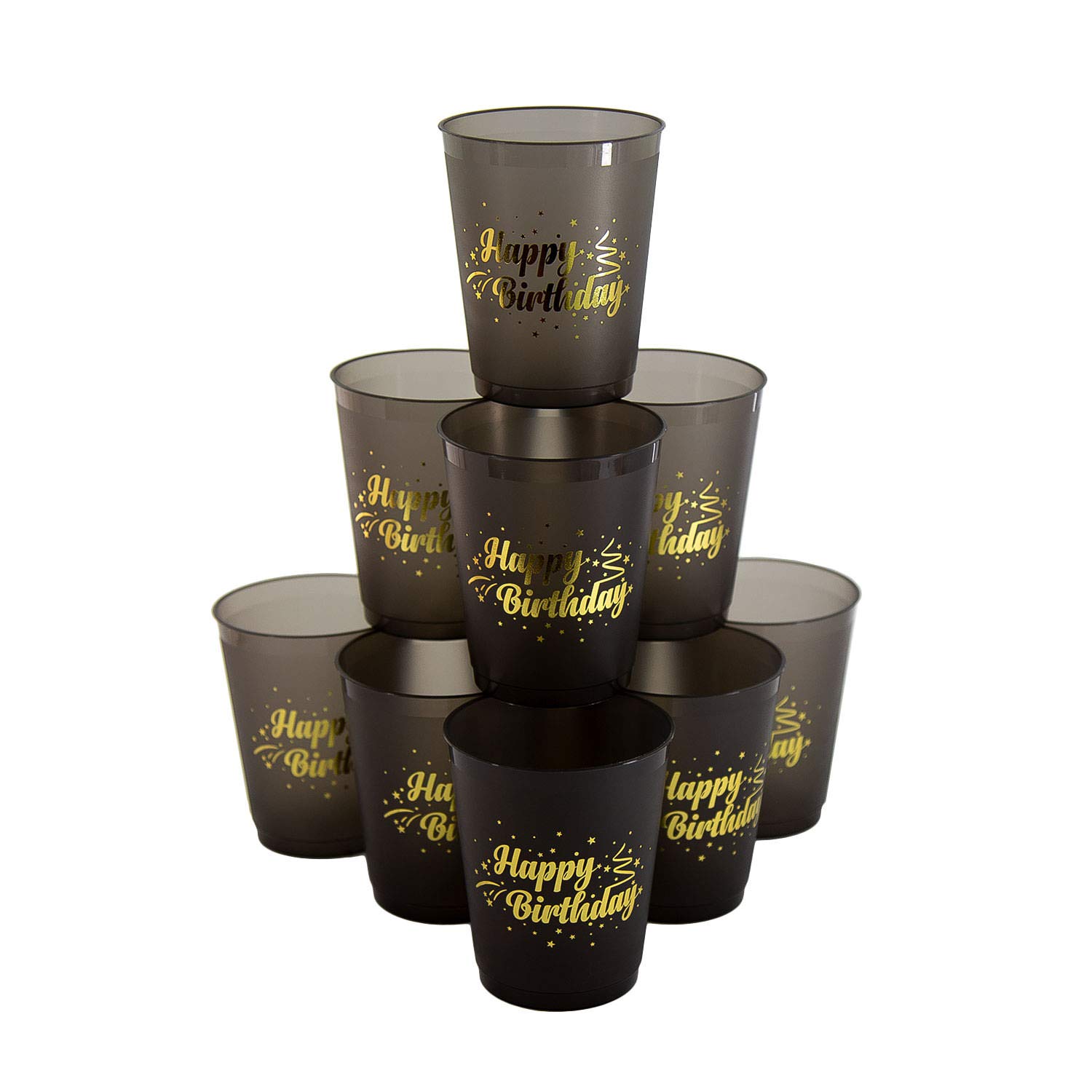Planst du eine Geburtstagsparty? Diese Happy Birthday Becher sind ein absolutes Must-Have! Im 10er-Set mit schicker Schwarz-Gold-Optik und dem klassischen \Happy Birthday\ Aufdruck. Aus stabilem Kunststoff - nicht nur für einmalige Nutzung, sondern immer wieder verwendbar.