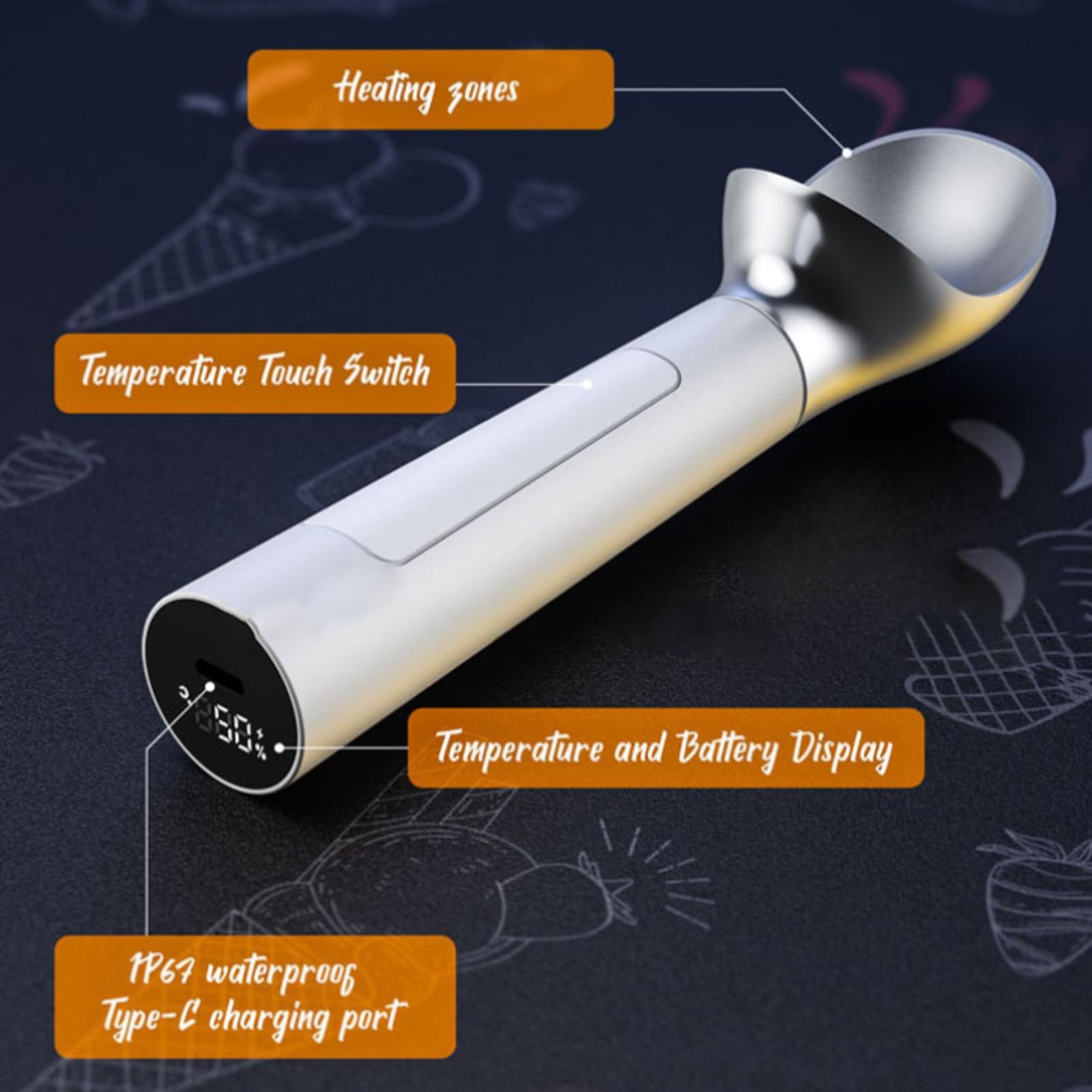 Kennst du das? Du willst Eis schöpfen und musst dich mit rockhartem Eis herumärgern? Mit diesem beheizten Eisportionierer gehört das der Vergangenheit an! Das Teil heizt sich auf bis zu 70°C auf und gleitet durch das härteste Eis wie durch warme Butter. Besonders clever: Der Griffsensor aktiviert die Heizung automatisch, sobald du die Schaufel in die Hand nimmst - kein Knopfdrücken nötig! Das LED-Display am Griff zeigt dir immer die aktuelle Temperatur und den Akkustand an. Mit dem starken 2000-mAh-Akku hält die Heizung bis zu 40 Sekunden pro Aktivierung - mehr als genug für mehrere Portionen. Aufladen kannst du ihn einfach per USB-Kabel. Aus wasserdichter Zinklegierung mit IP67 Schutz - das bedeutet, du kannst ihn problemlos unter fließendem Wasser reinigen. Nur den Griff solltest du mit einem feuchten Tuch abwischen. In weiß, gelb oder blau erhältlich - such dir deine Lieblingsfarbe aus! Perfekt nicht nur für Eis, sondern auch für Gelato, Sorbet oder andere gefrorene Desserts. Mach dir das Leben leichter und gönn dir dieses geniale Küchenhelferlein! Nie mehr zerbrochene Eislöffel oder verzweifeltes Graben im Eis - einfach einschalten und genießen. Ein echter Game-Changer für alle Eis-Liebhaber!