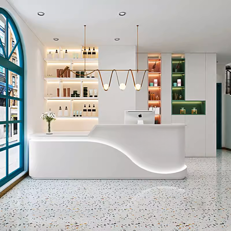 Wow, dieser Empfangstisch macht was her! Mit seinen stylischen LED-Lichtern sorgt er für eine richtig professionelle Atmosphäre in deinem Geschäft oder Büro. Die Maße von 140 x 50 x 105 cm sind ideal für den Empfangsbereich - nicht zu groß, nicht zu klein. Die geräumige Tischplatte bietet genug Platz für Computer, Kasse oder Dokumente. Und praktisch: Die offenen Regale und Schubladen geben dir jede Menge Stauraum für Ordnungssysteme, Büromaterial oder persönliche Sachen. So bleibt alles schön organisiert und griffbereit. Der Aufbau ist total einfach - mit der beiliegenden Anleitung kriegst du das locker hin, auch ohne handwerkliches Talent. Perfekt für Beauty-Salons, Läden, Restaurants oder Büros. Die beige Farbe passt zu fast jedem Einrichtungsstil und wirkt immer freundlich und einladend. Mit dieser Theke machst du deinen Kunden einen richtig guten ersten Eindruck! Und das Beste: Die LED-Beleuchtung sieht nicht nur cool aus, sondern sorgt auch für eine angenehme Arbeitsatmosphäre. Ein echter Hingucker für jeden Business-Bereich!