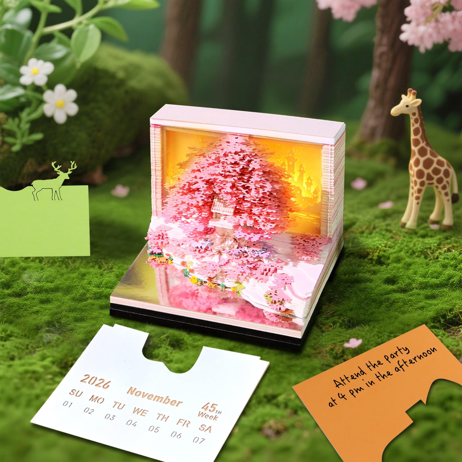 Dieser einzigartige 3D-Kalender für 2026 ist weit mehr als nur ein Zeitmesser - er ist ein kleines Kunstwerk für deinen Schreibtisch! Jeden Tag eine Seite abreißen und am Ende des Jahres entsteht eine wunderschöne 3D-Baum-Skulptur. Mit integrierter LED-Beleuchtung, die den Kalender in warmes Licht taucht - perfekt für gemütliche Abende. Die hochwertige Acryl-Vitrine schützt das filigrane Papierkunstwerk und macht es zum echten Hingucker. Nicht nur praktisch, sondern auch nachhaltig - statt den Kalender wegzuwerfen, behältst du ein kunstvolles Objekt. Perfekt als Geschenk für kreative Köpfe, Büroangestellte oder alle, die das Besondere lieben. Der Kalender dient zusätzlich als Notizblock und Stifthalter - einfach multifunktional! Verwandele deinen Arbeitsplatz in eine Oase der Kreativität und lasse dich jeden Tag aufs Neue von diesem außergewöhnlichen Kalender inspirieren. Ein wahrer Blickfang, der Gespräche anregt!