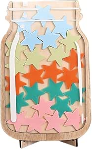Motivations-Helfer für Kinder! Dieses Belohnungsglas mit 28 bunten Sternen macht Erziehung leichter. Aus Holz und Acryl - langlebig und sicher. Mit praktischem Holzständer und Magnetaufklebern für die Tafel. Einfach zu bedienen - Kinder können Sterne selbst einwerfen. Perfekt für Zuhause oder Klassenzimmer um positives Verhalten zu belohnen. Fördert Selbstvertrauen und Verantwortungsbewusstsein. Inklusive Buchstabenaufkleber zur Personalisierung. Mach deinem Kind oder deinen Schülern eine Freude mit diesem charmanten Belohnungssystem!
